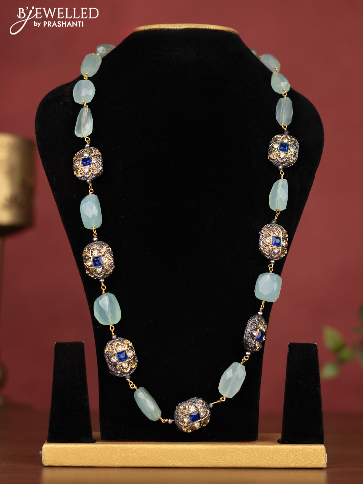 Jaipur crystal beaded ice blue necklace with blue stones without earring