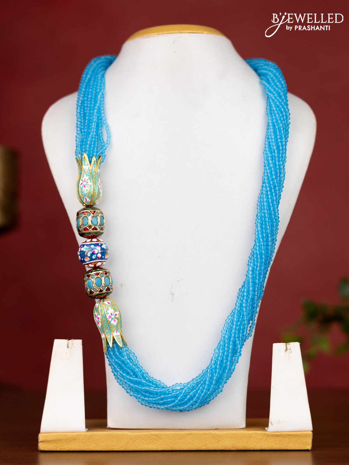 Jaipur crystal beaded light blue haaram with minakari balls without earrings