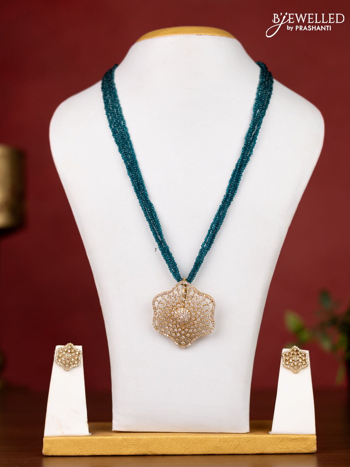 Jaipur crystal beaded multilayer blue necklace with cz stone pendant