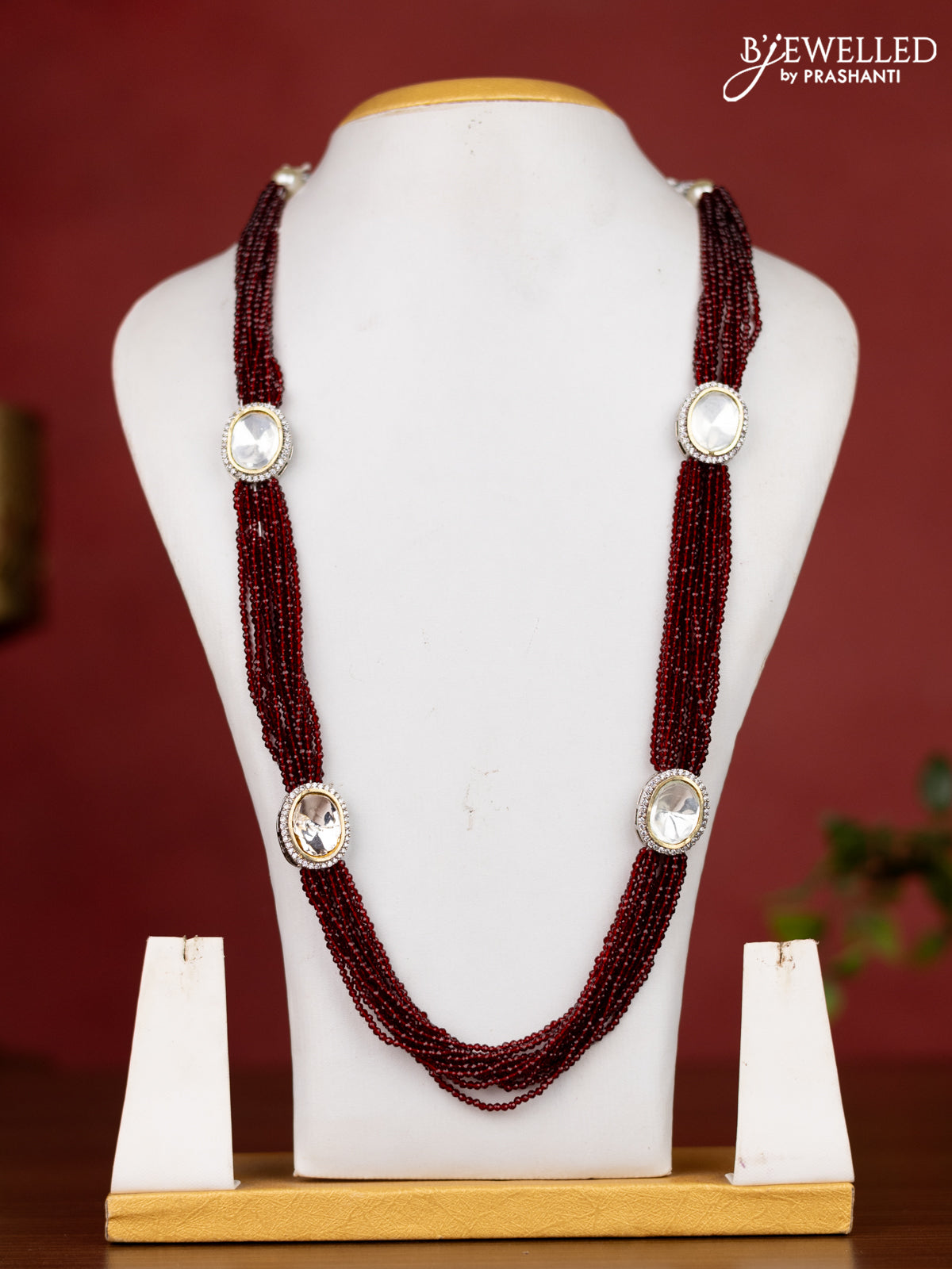 Jaipur crystal beaded multilayer maroon necklace with cz stone pendant without earrings