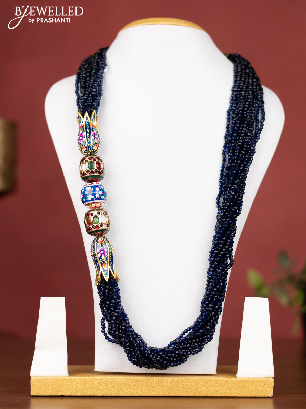 Jaipur crystal beaded navy blue necklace with minakari balls and multicolour stones without earrings