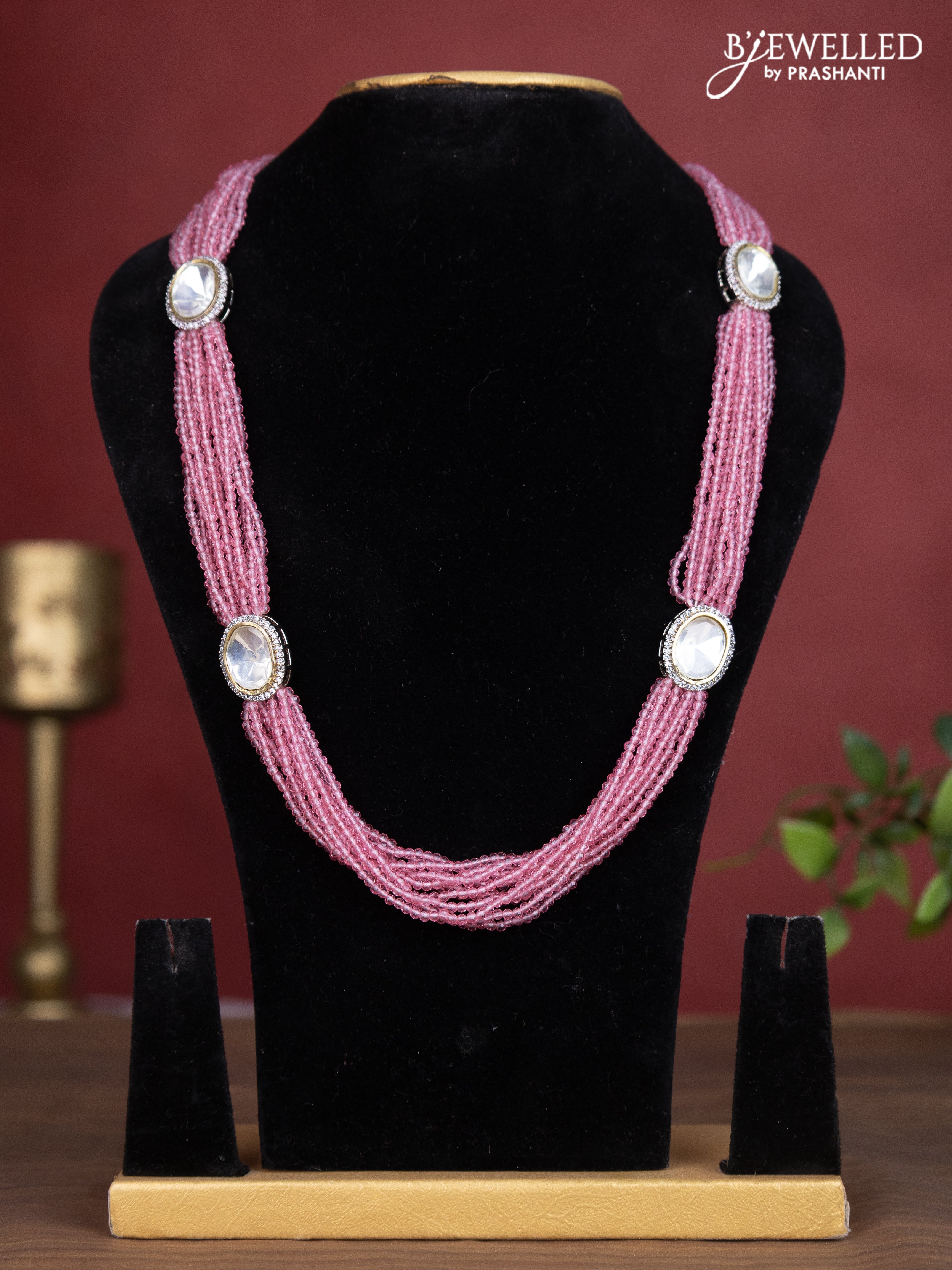 Jaipur multilayer beaded baby pink necklace with cz stone pendant without earring