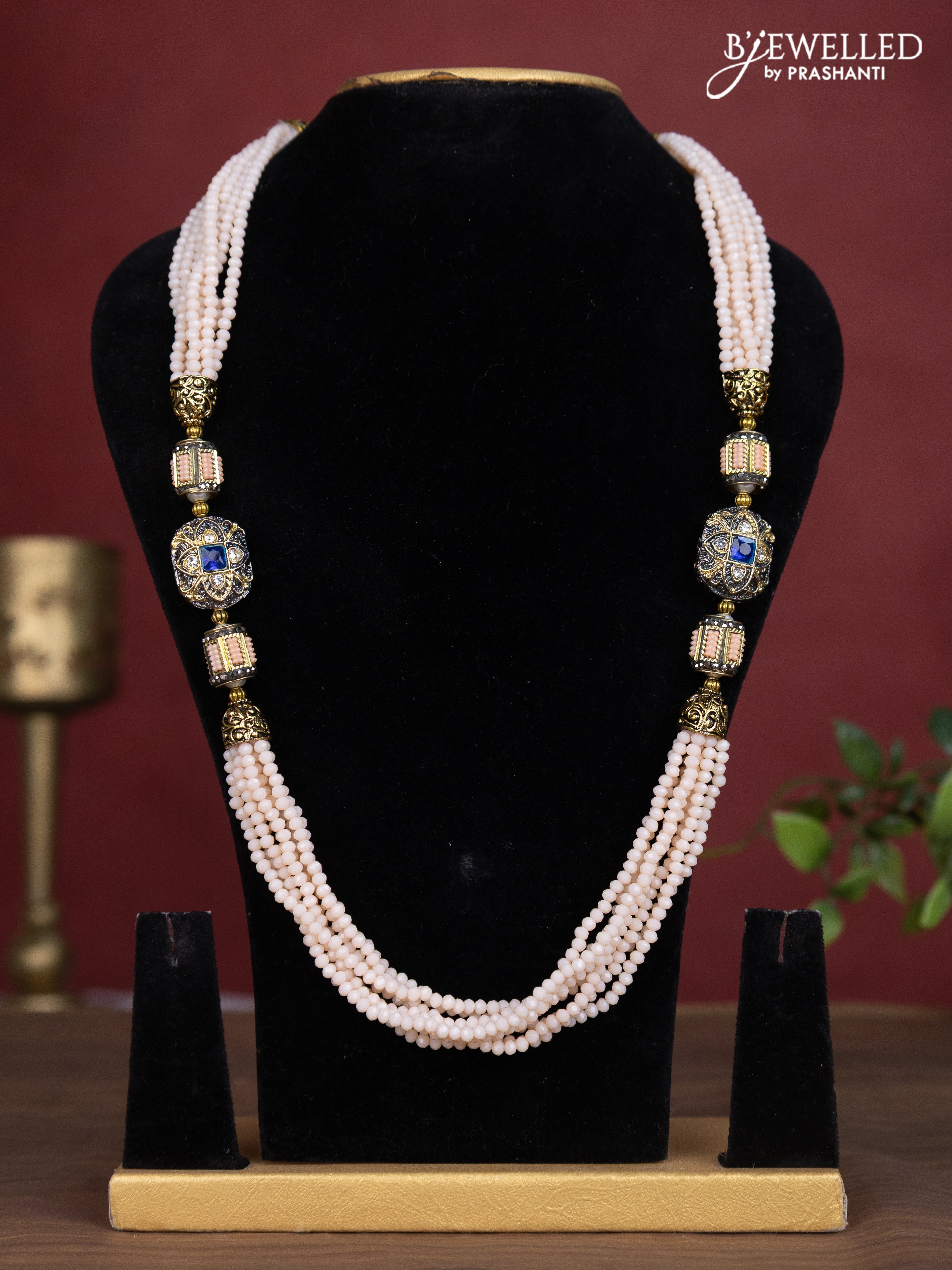 Jaipur multilayer beaded cream necklace with meenakari pendant without earring