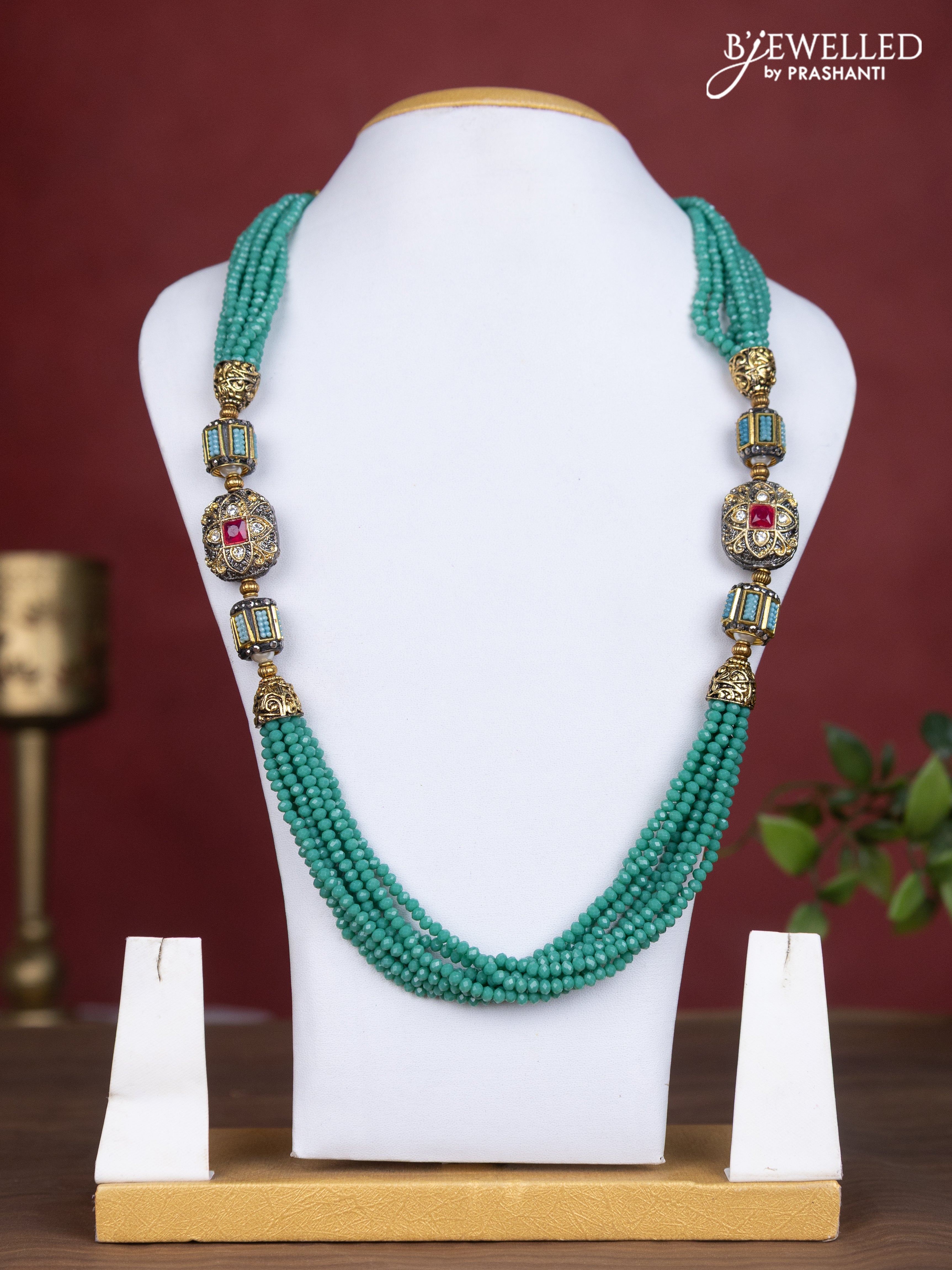 Jaipur multilayer beaded light green necklace with meenakari pendant without earring