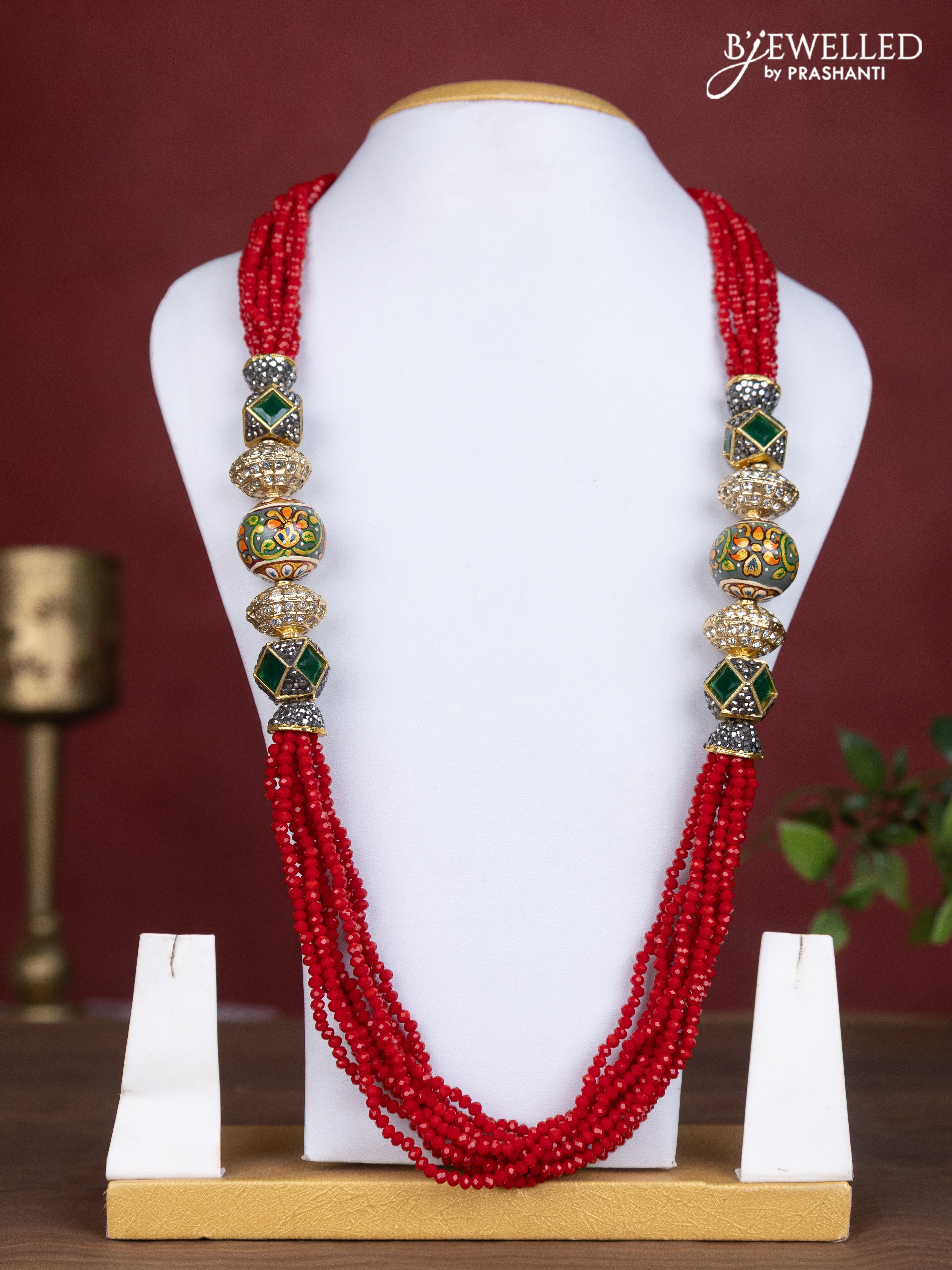 Jaipur multilayer beaded red necklace with meenakari balls without earring