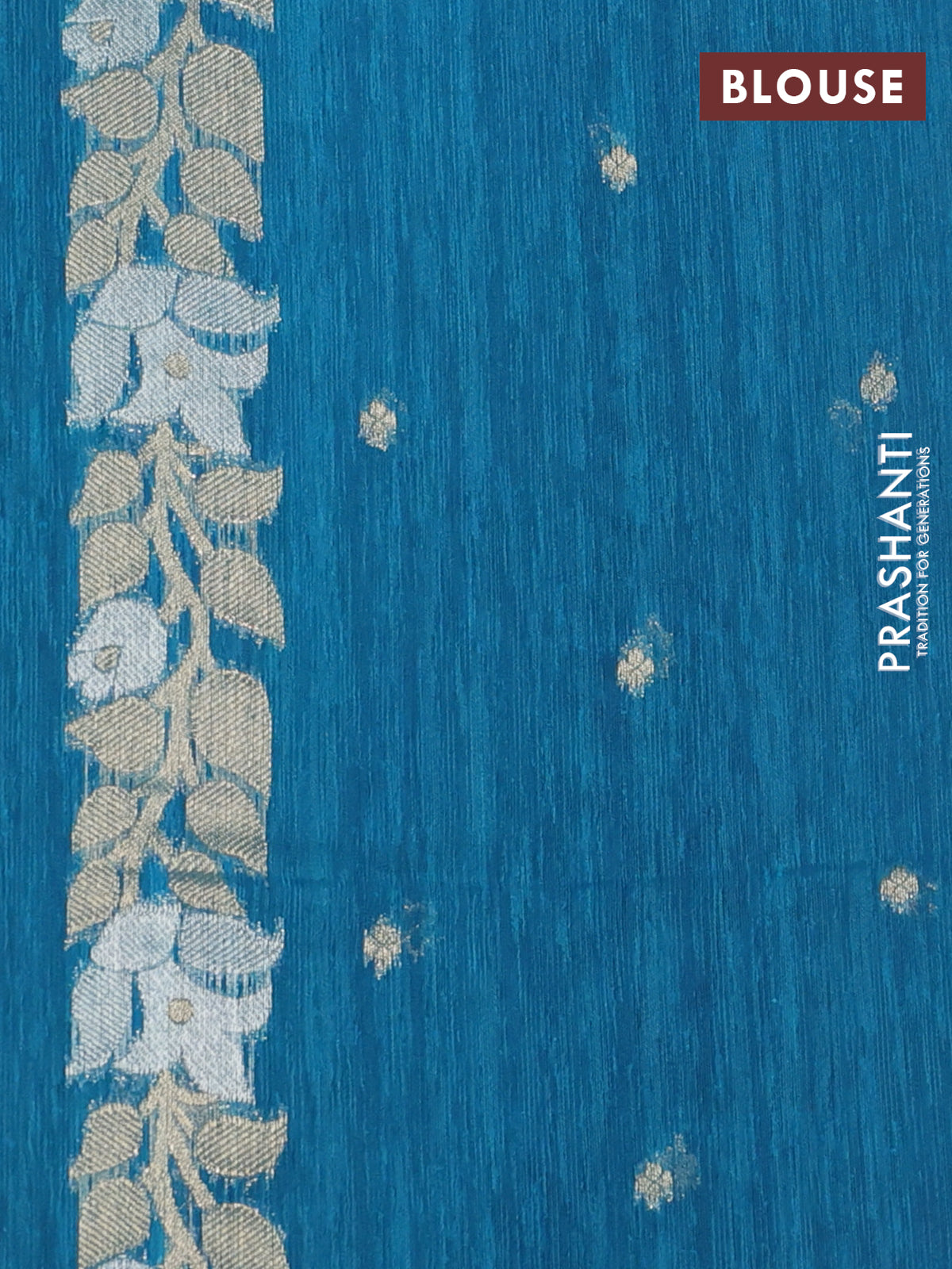 Jute linen saree teal blue with zari woven buttas and floral zari woven border