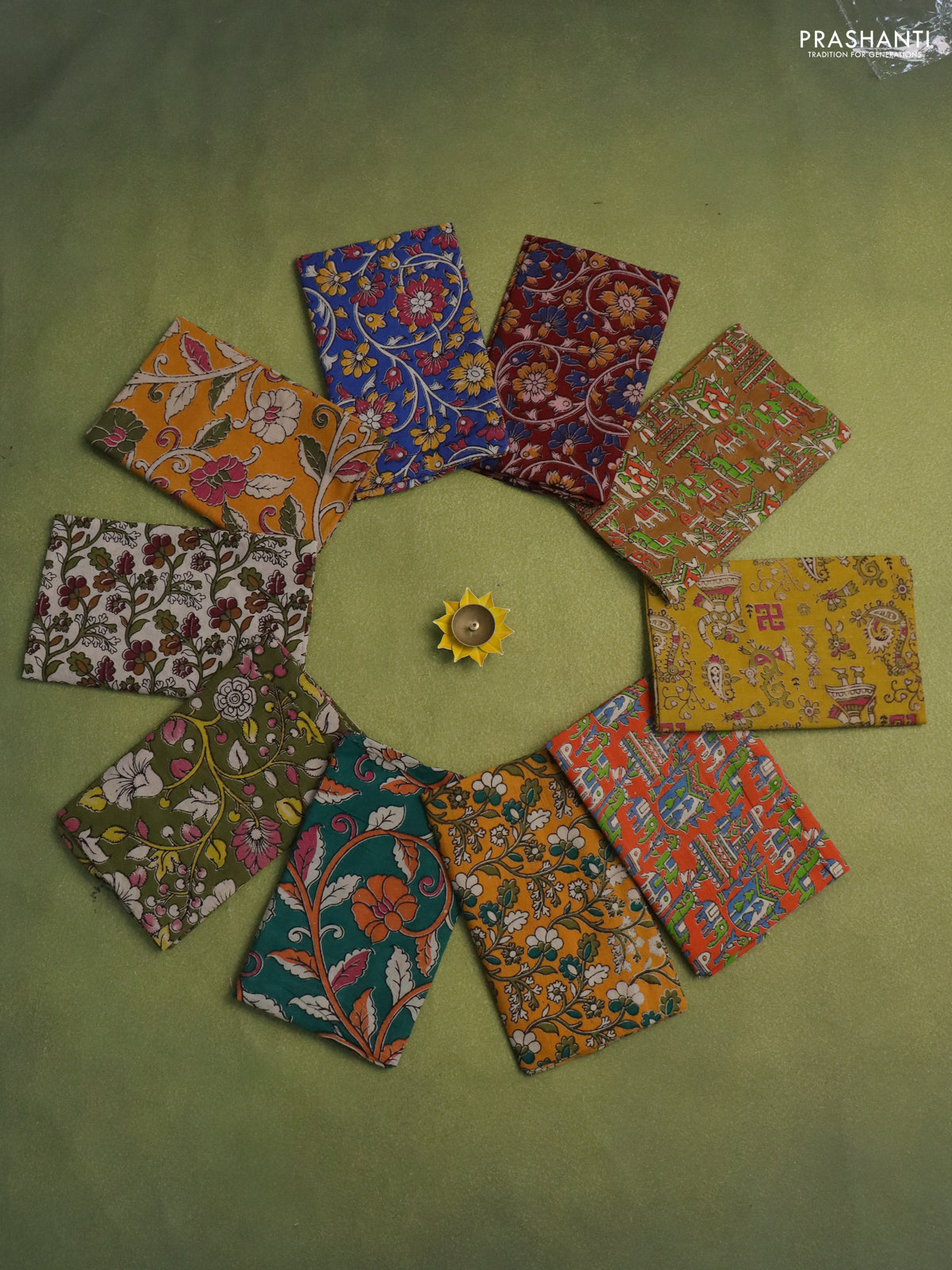Kalamkari cotton blouse bits multi colour and multi design Pack of 10
