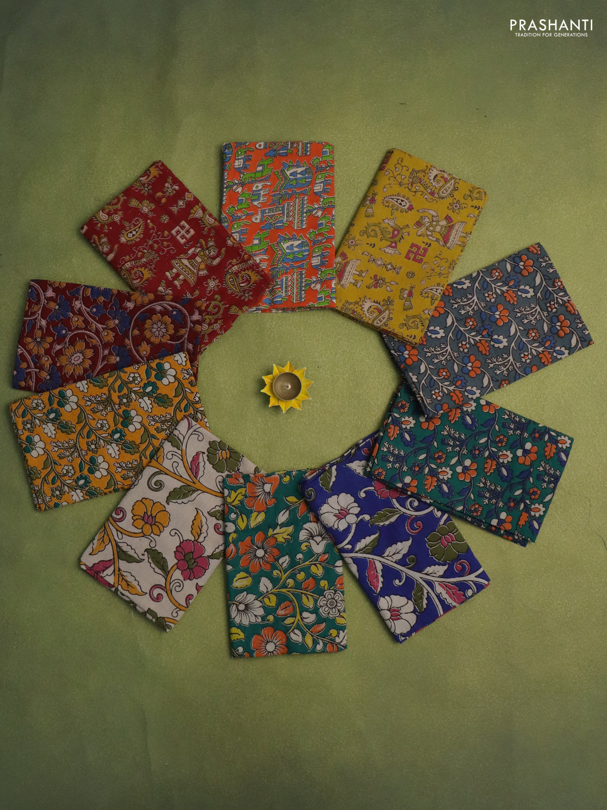 Kalamkari cotton blouse bits multi colour and multi design Pack of 10