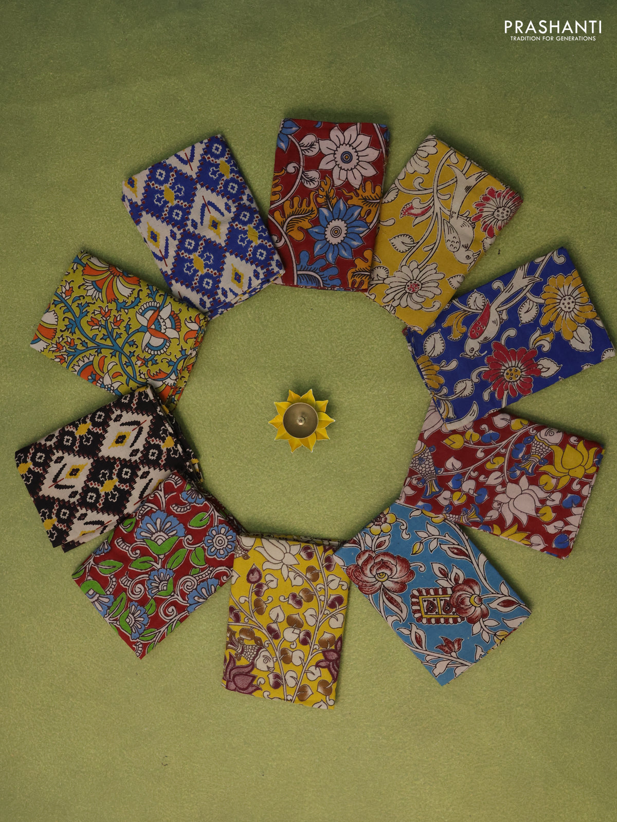 Kalamkari cotton blouse bits multi colour and multi design with pack of 10