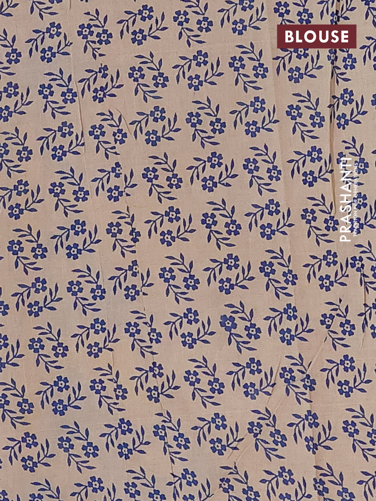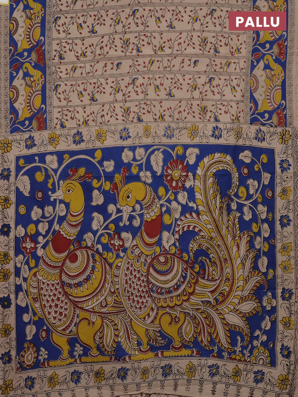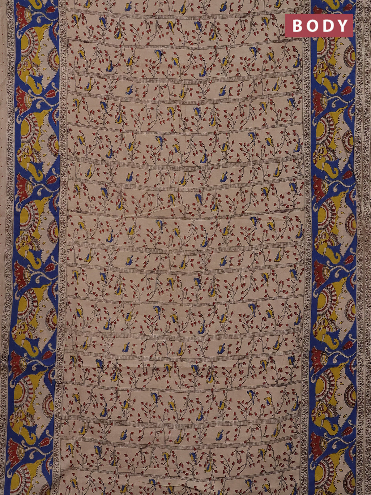 Kalamkari cotton saree beige and blue with allover prints and printed border