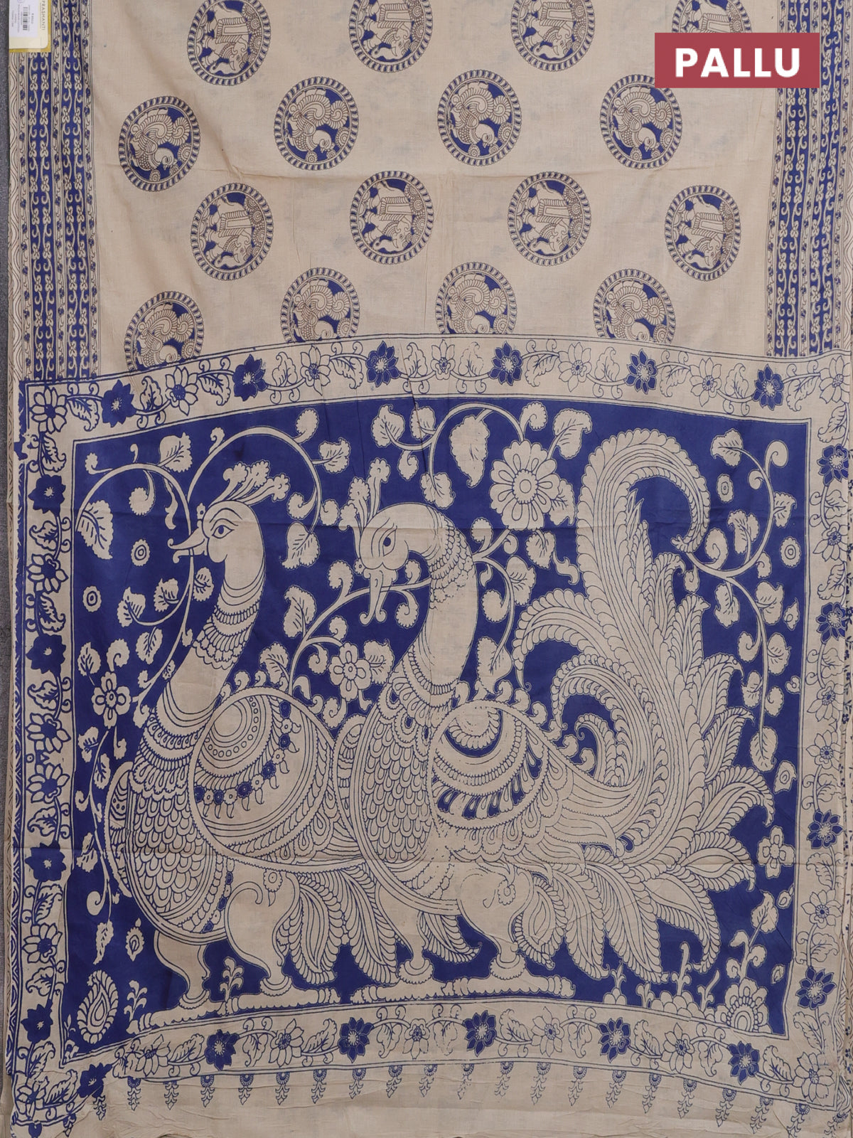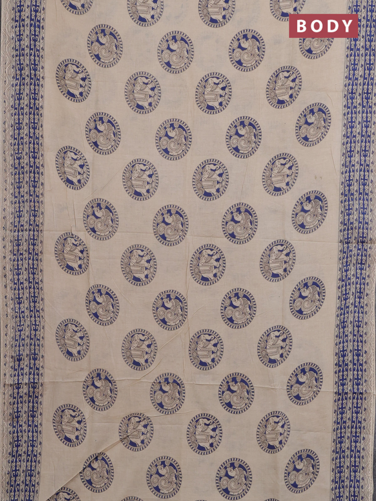 Kalamkari cotton saree beige and blue with annam butta prints and printed border