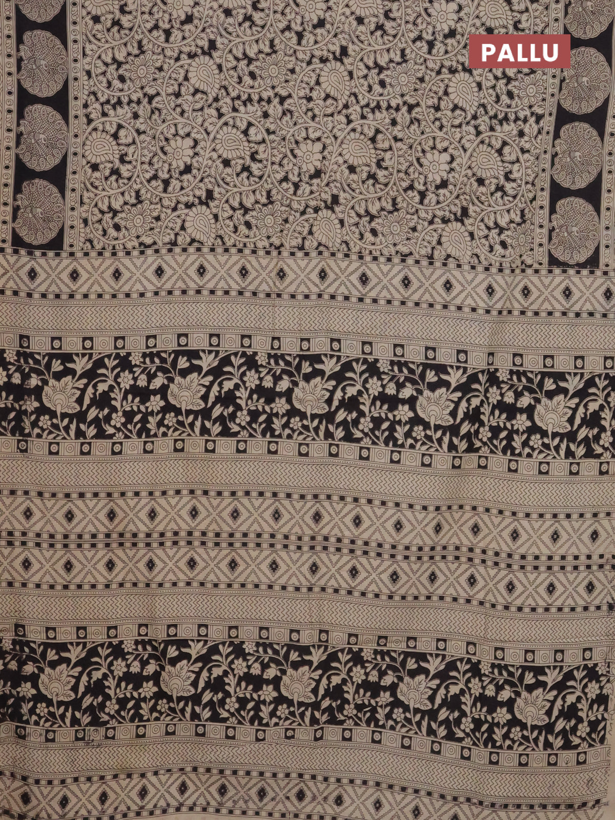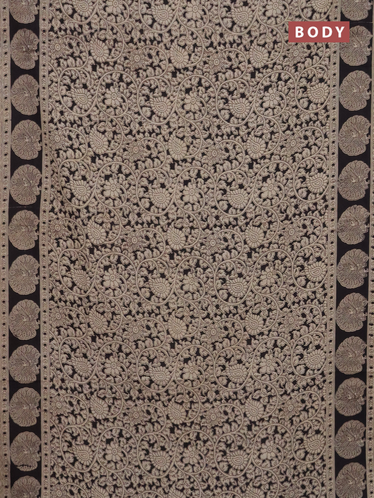 Kalamkari cotton saree black and beige with allover prints and printed border