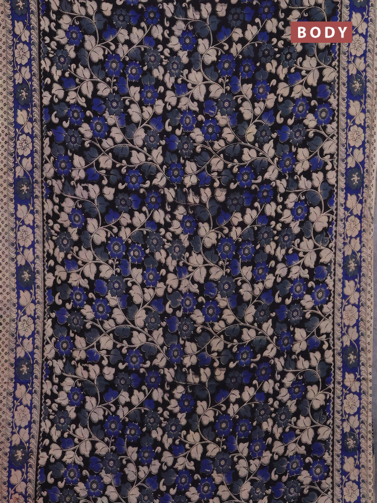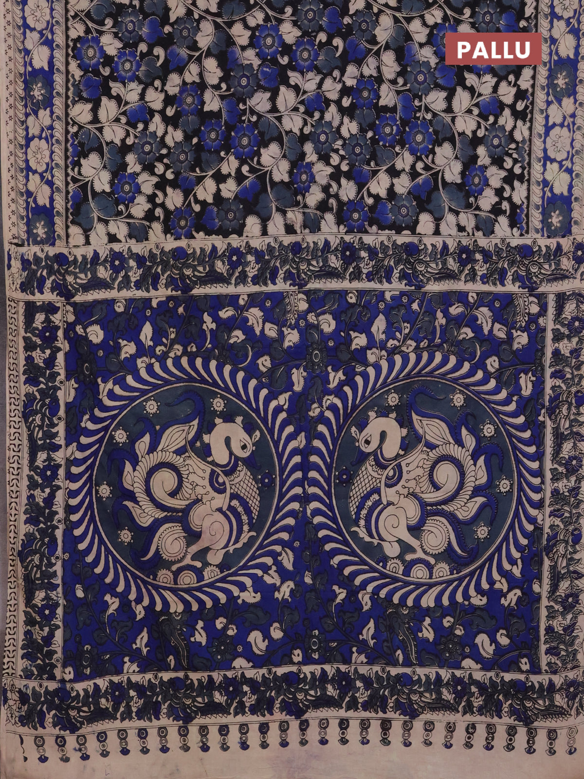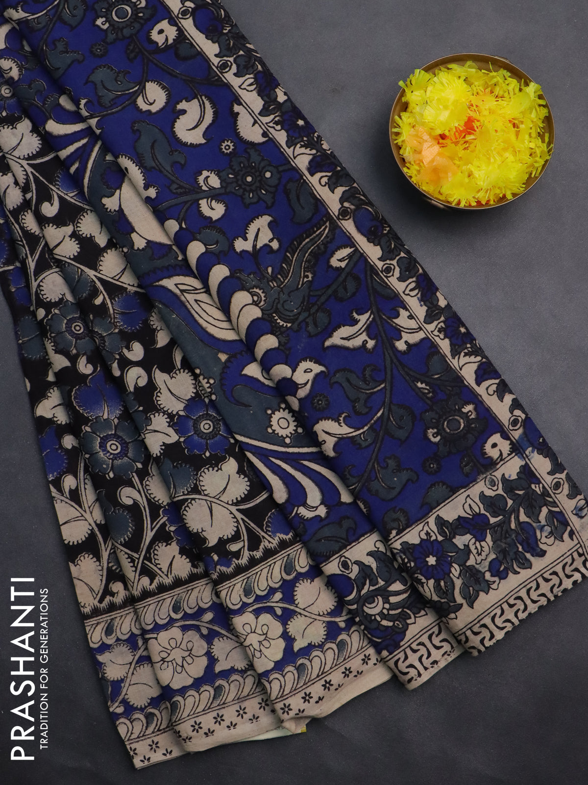 Kalamkari cotton saree black and blue with allover prints and printed border