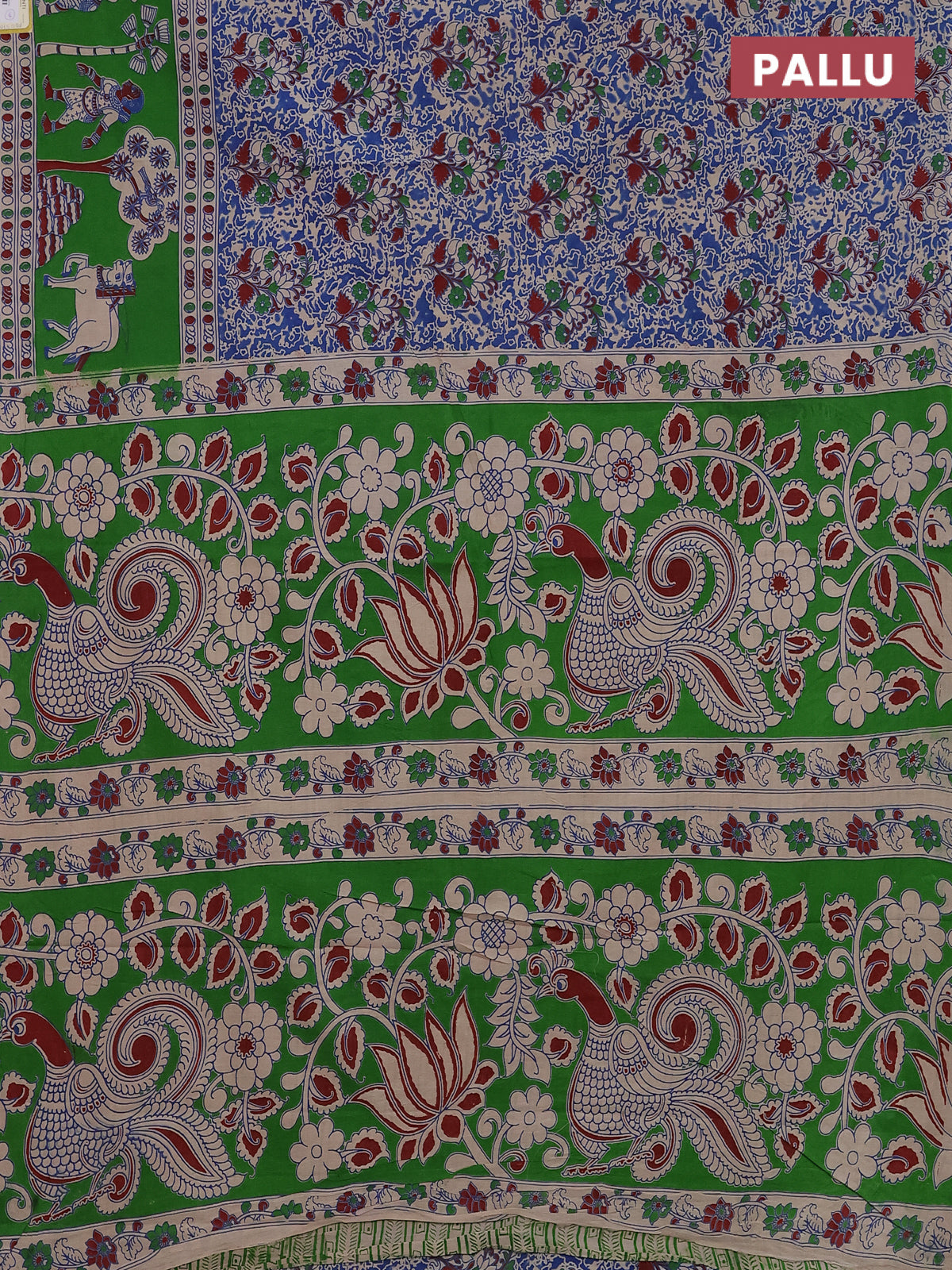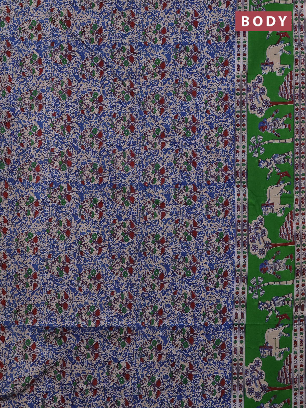 Kalamkari cotton saree blue and green with allover prints and printed border