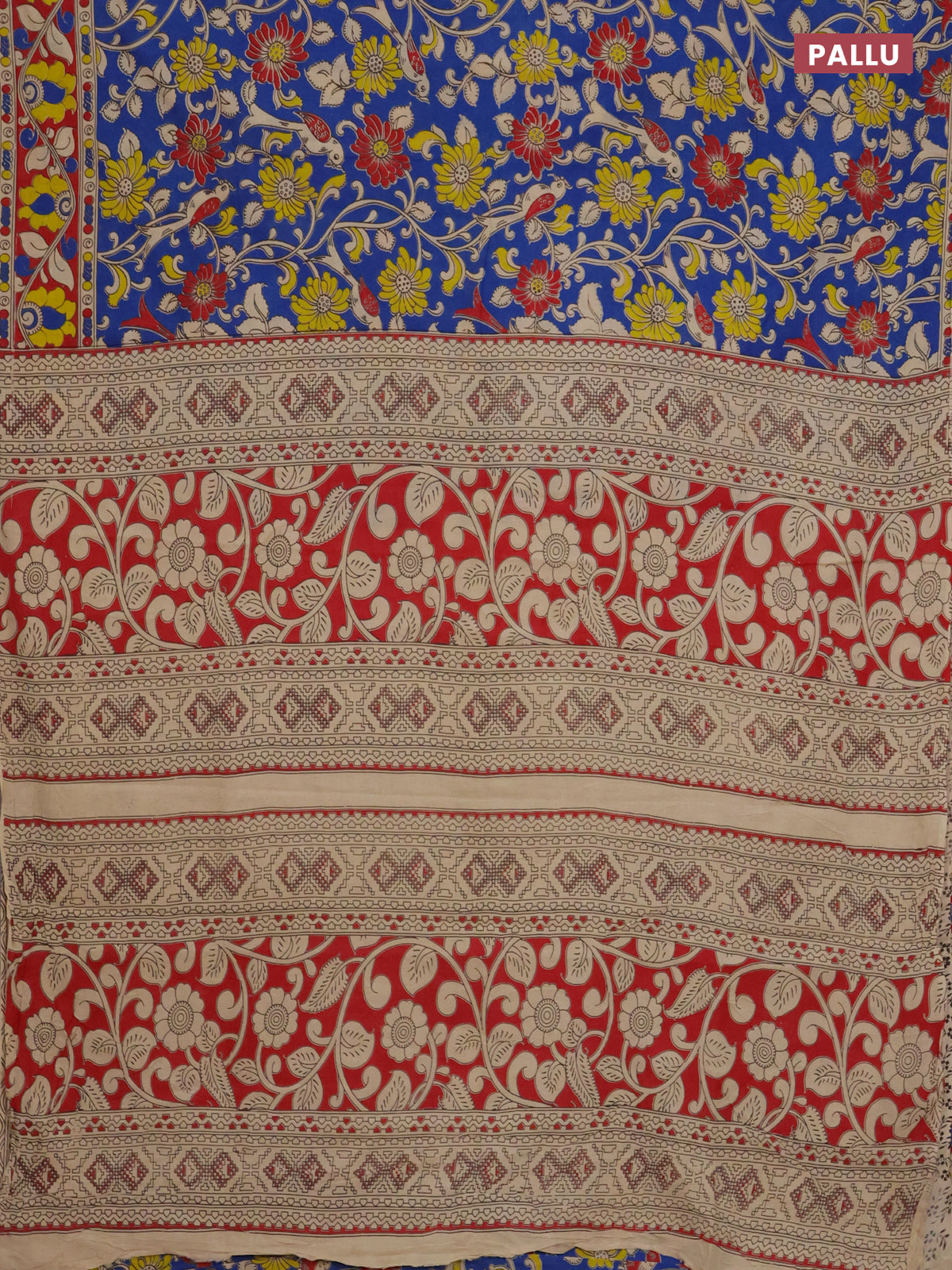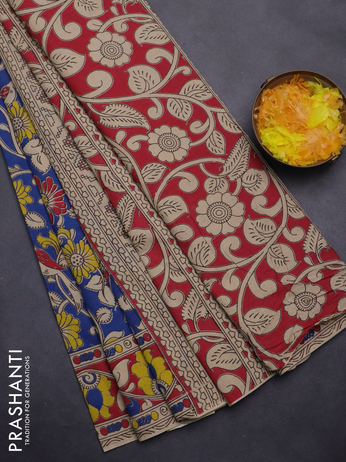 Kalamkari cotton saree blue and maroon with allover prints and printed border