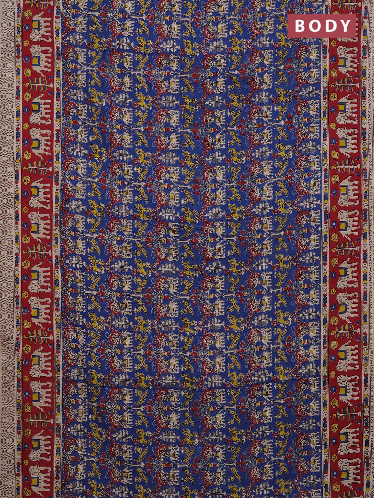 Kalamkari cotton saree blue and maroon with allover prints and printed border