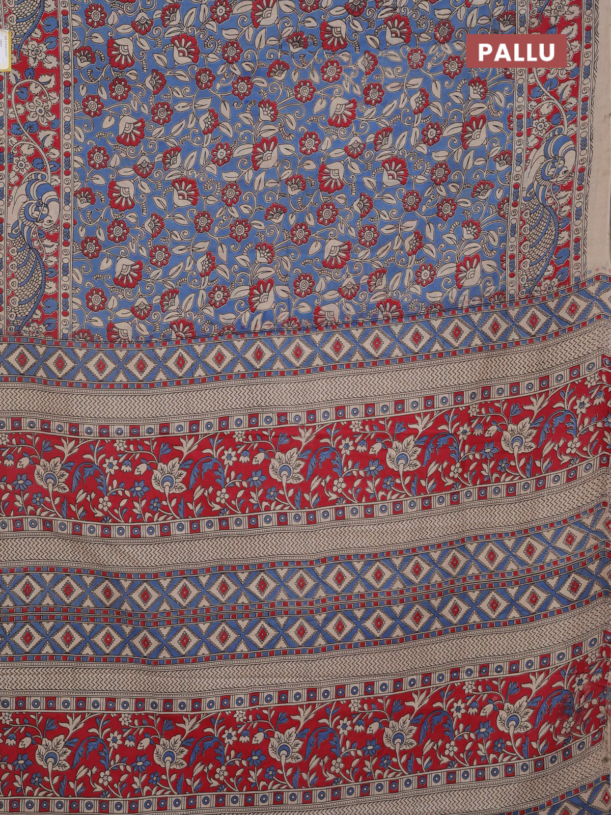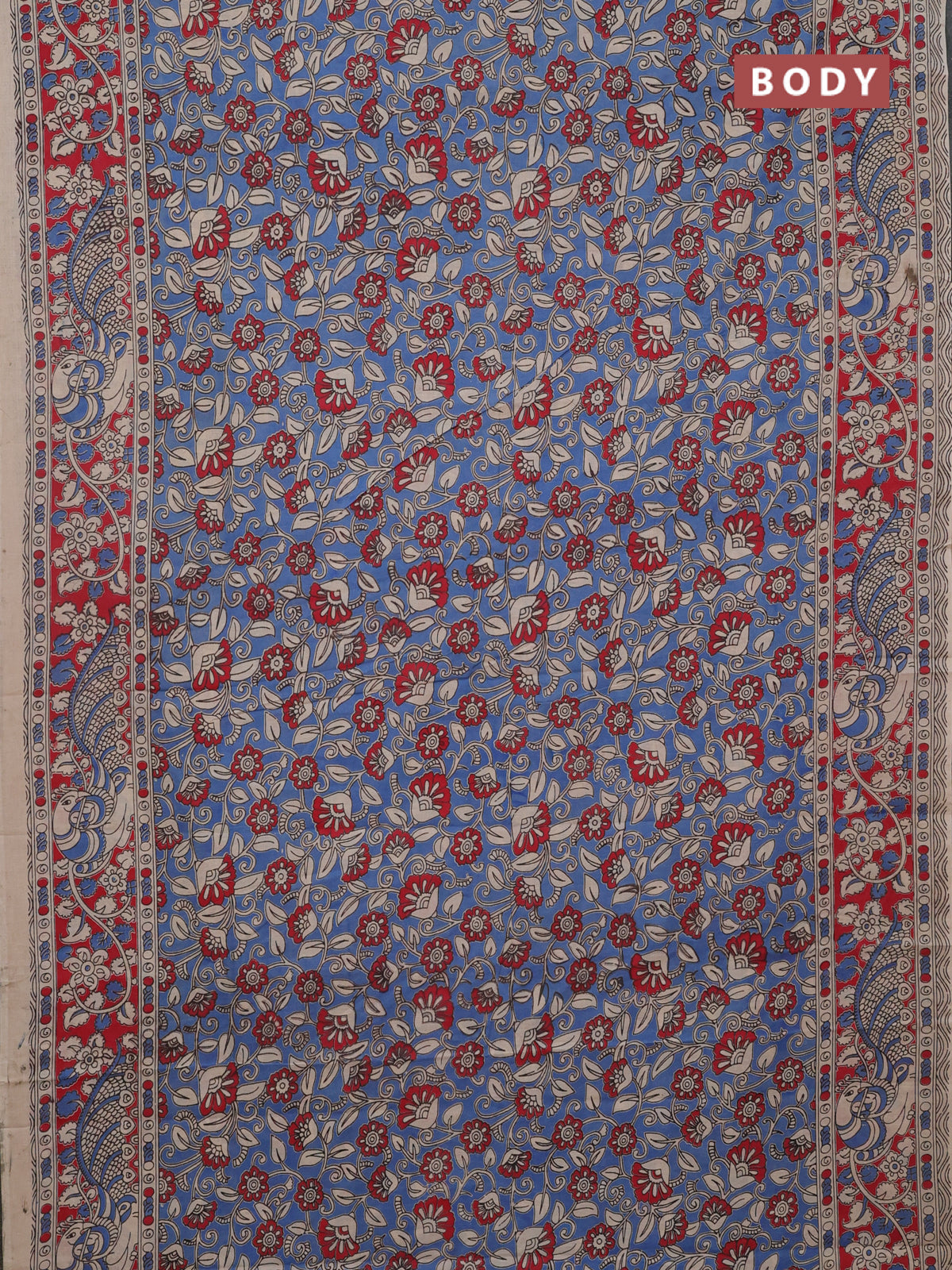 Kalamkari cotton saree blue and red with allover prints and printed border