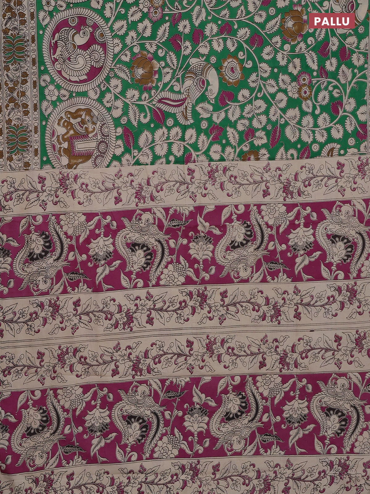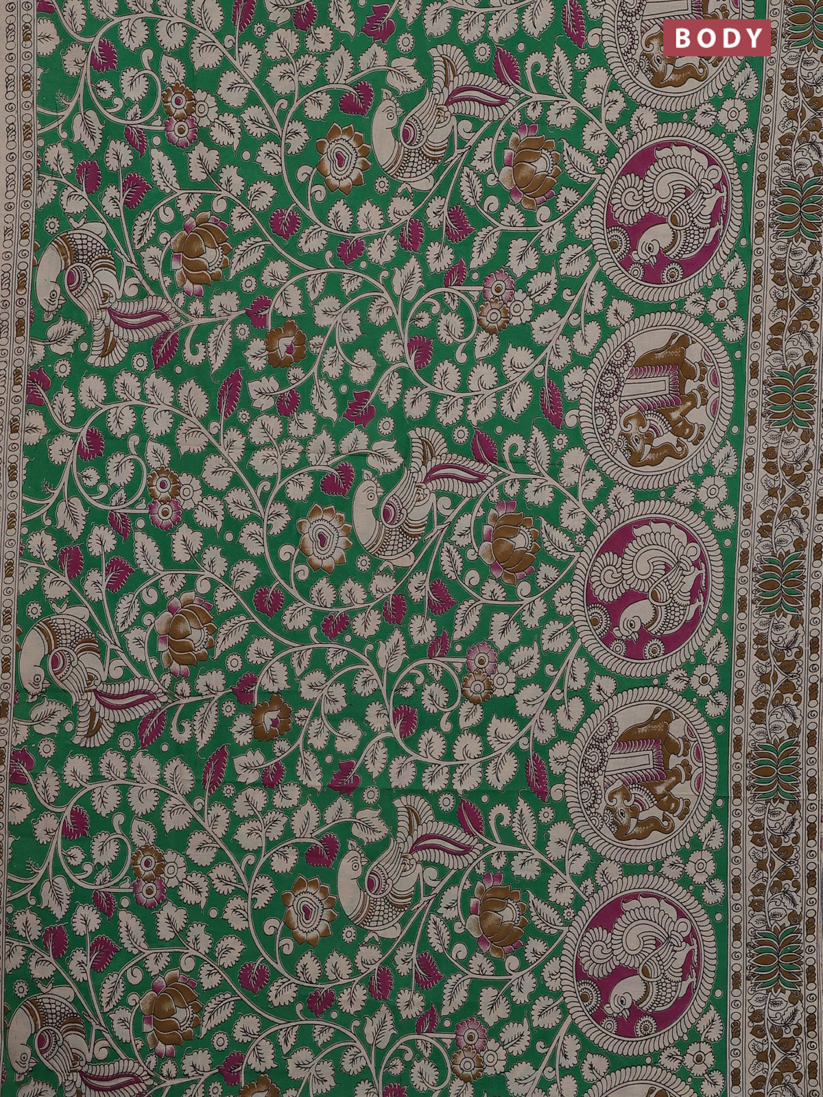 Kalamkari cotton saree green and beige with allover prints and printed border