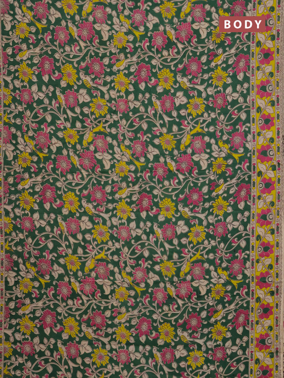 Kalamkari cotton saree green and yellow with allover prints and printed border