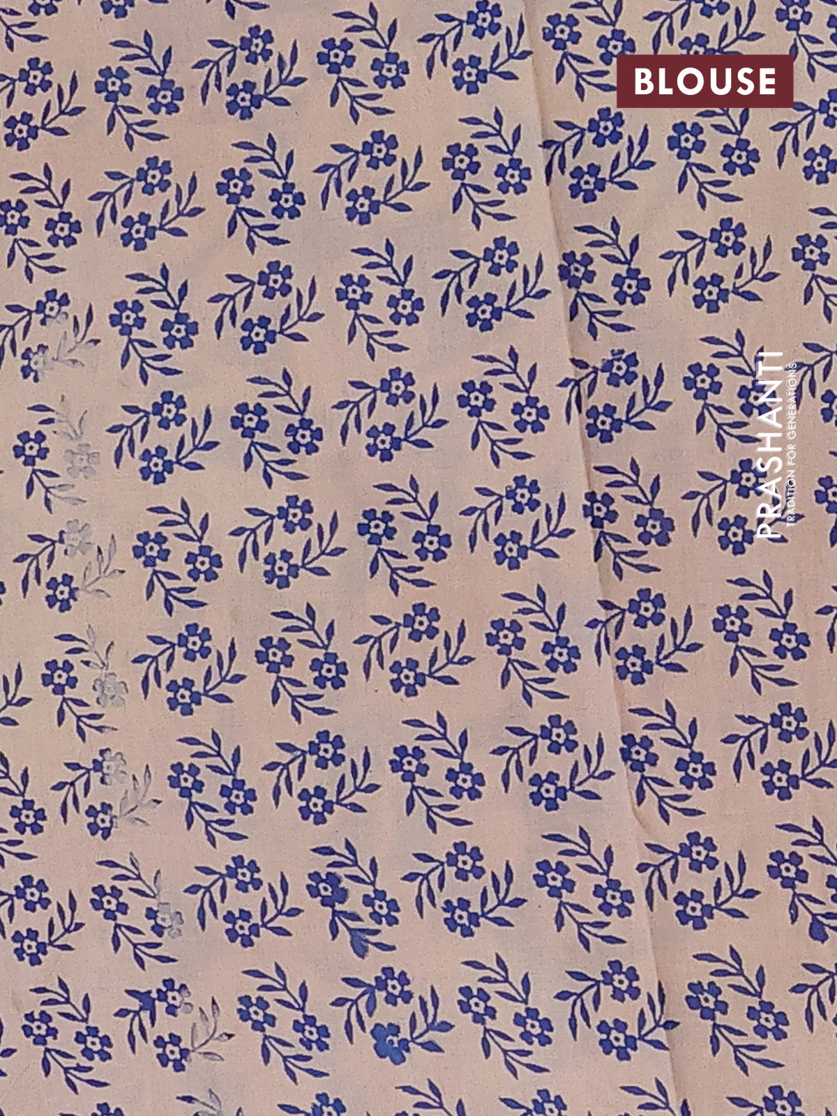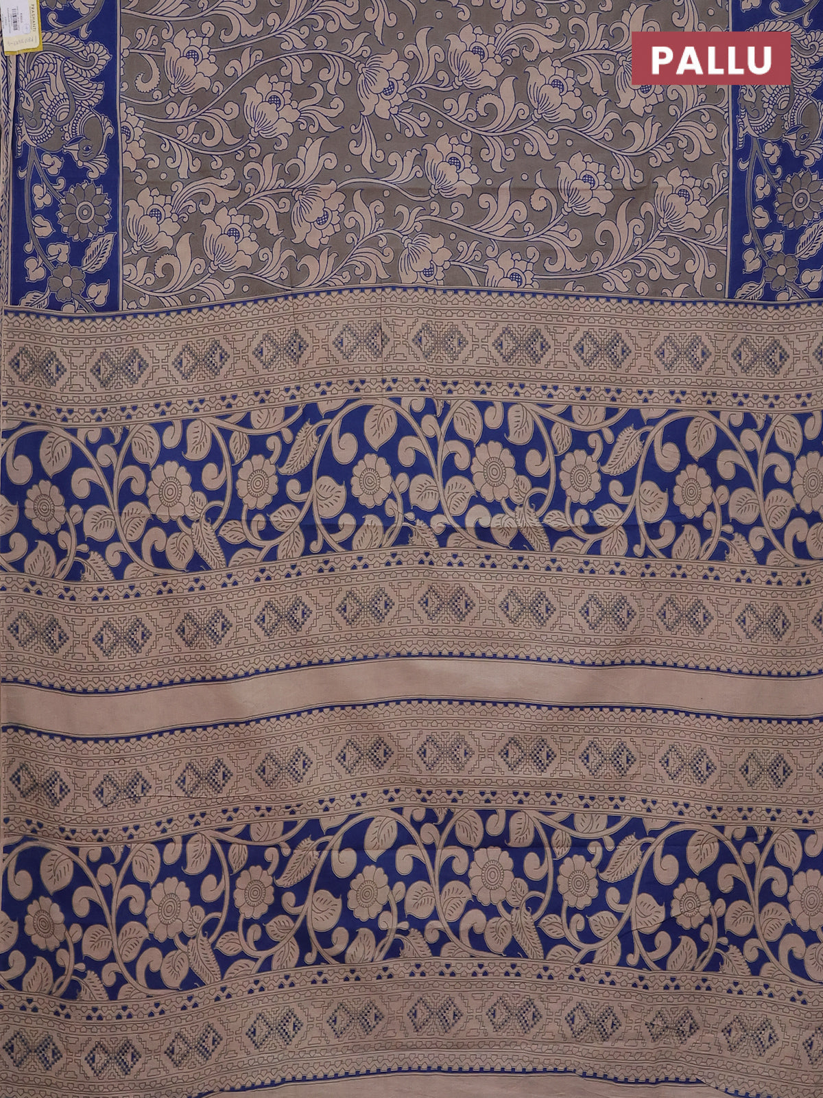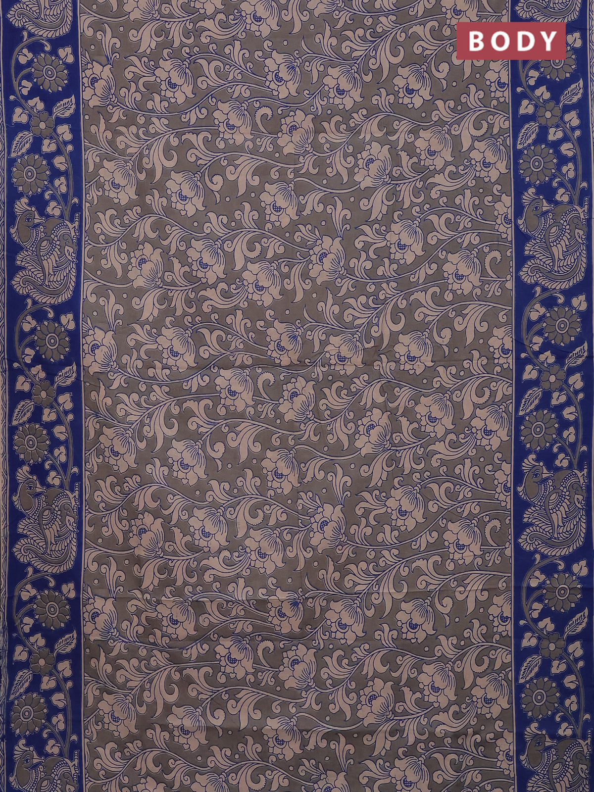 Kalamkari cotton saree grey and blue with allover prints and printed border