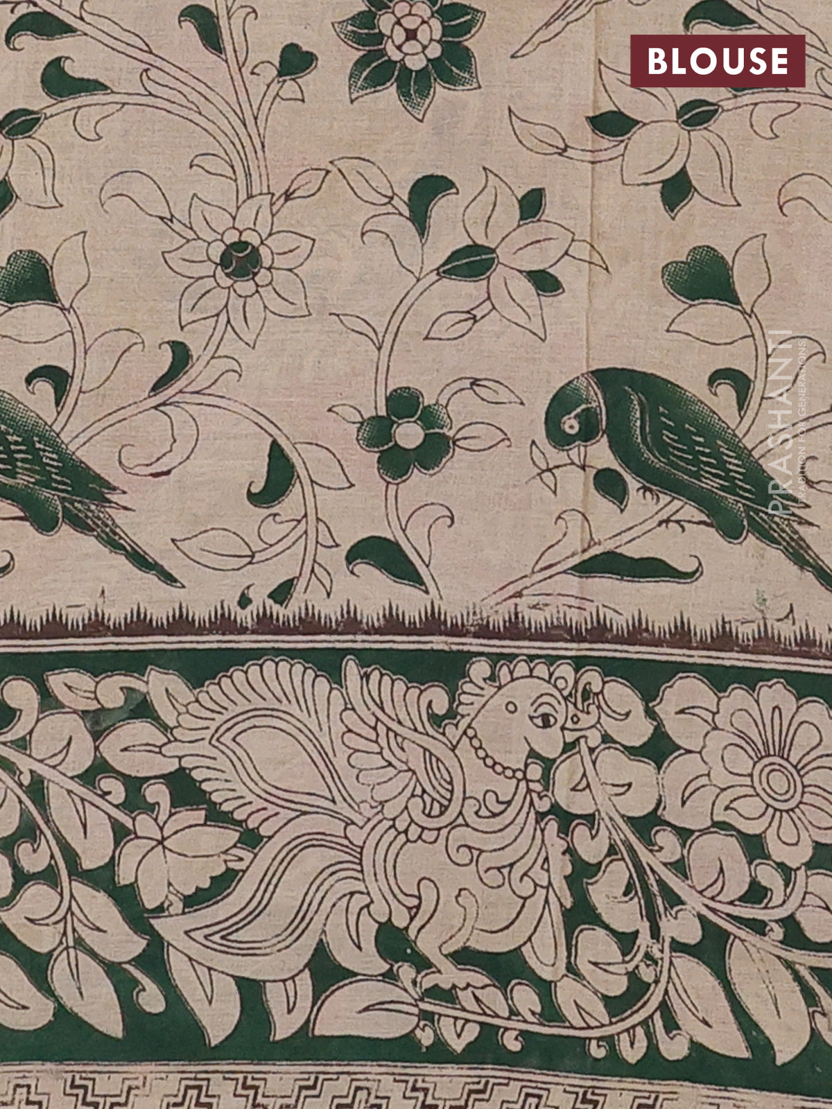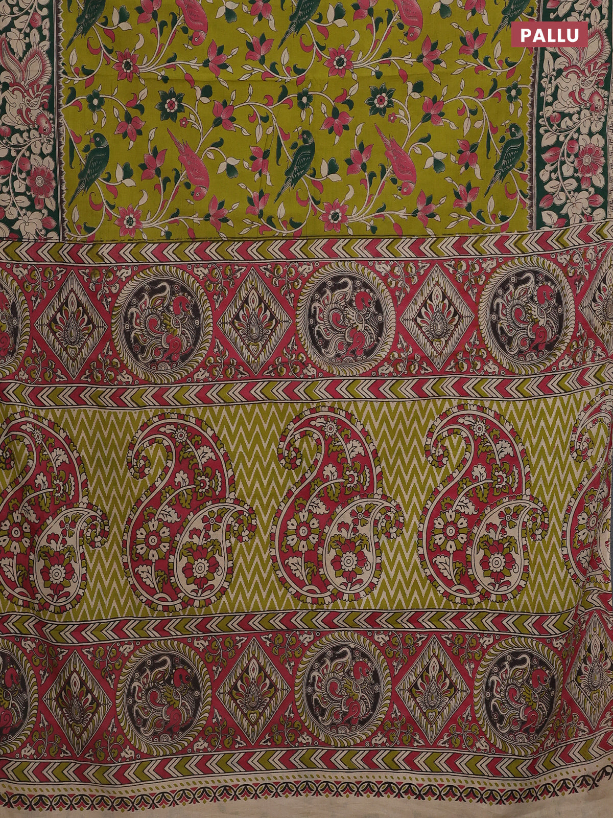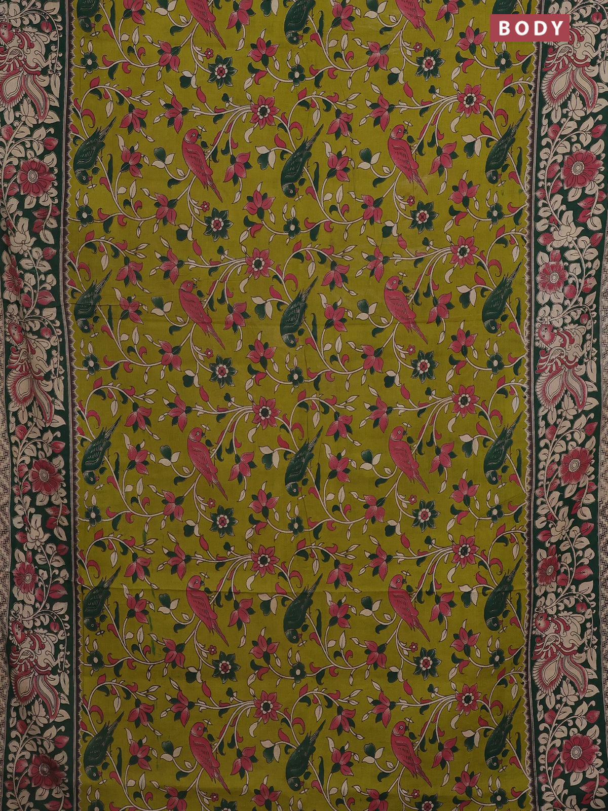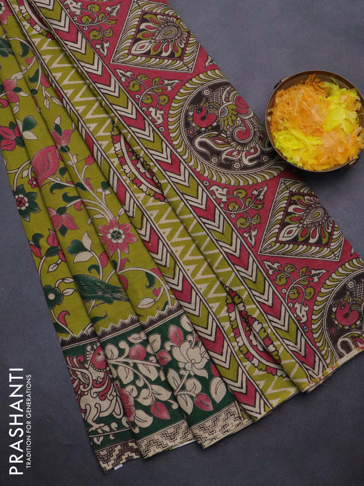 Kalamkari cotton saree light green and dark green with allover prints and printed border