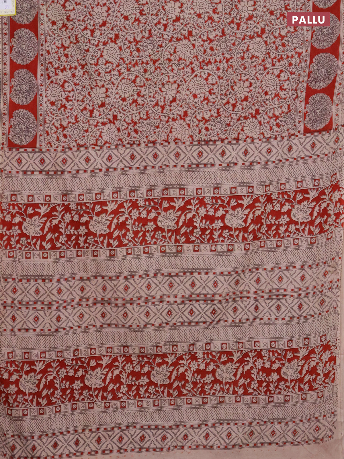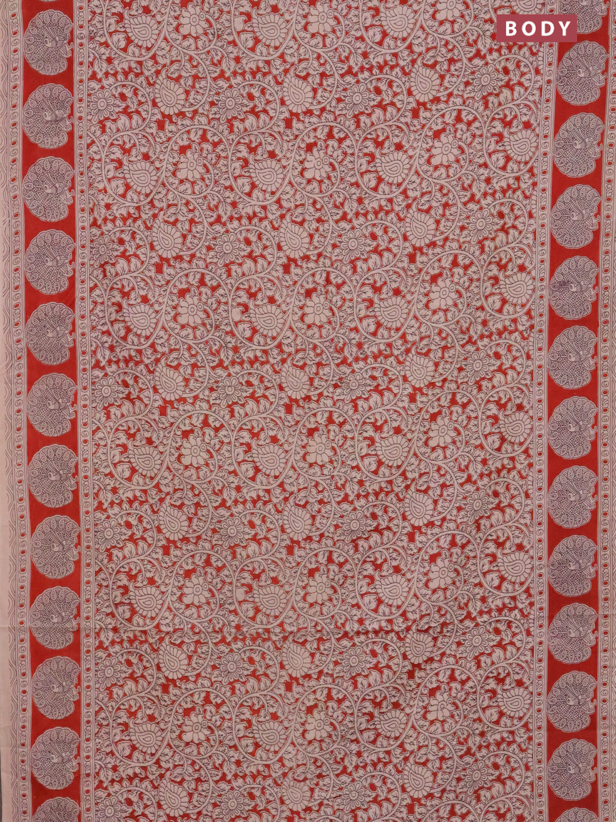 Kalamkari cotton saree maroon and beige with allover prints and printed border