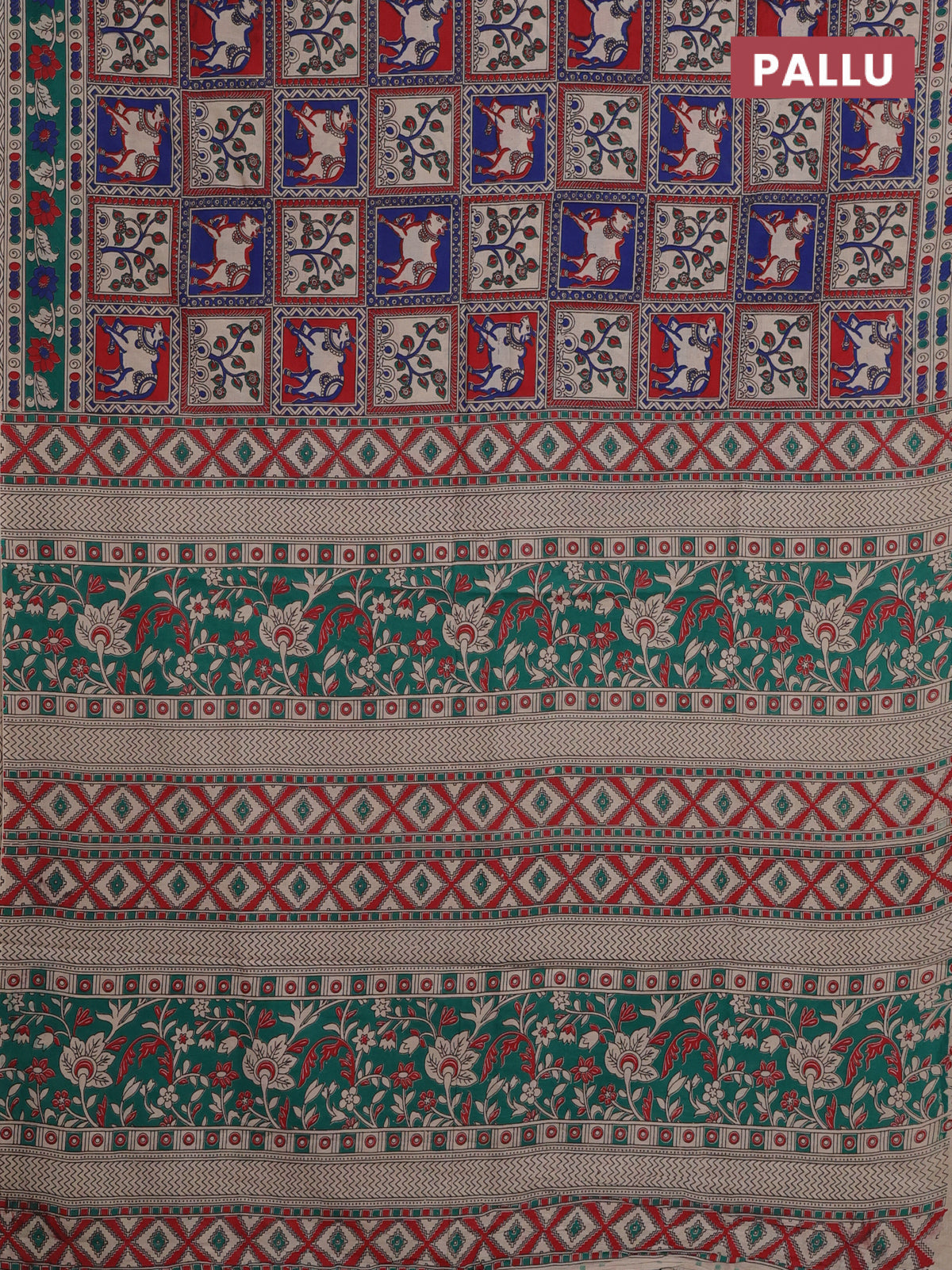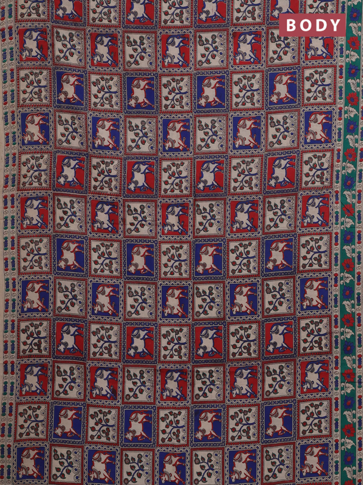 Kalamkari cotton saree multi colour and green with allover prints and printed border