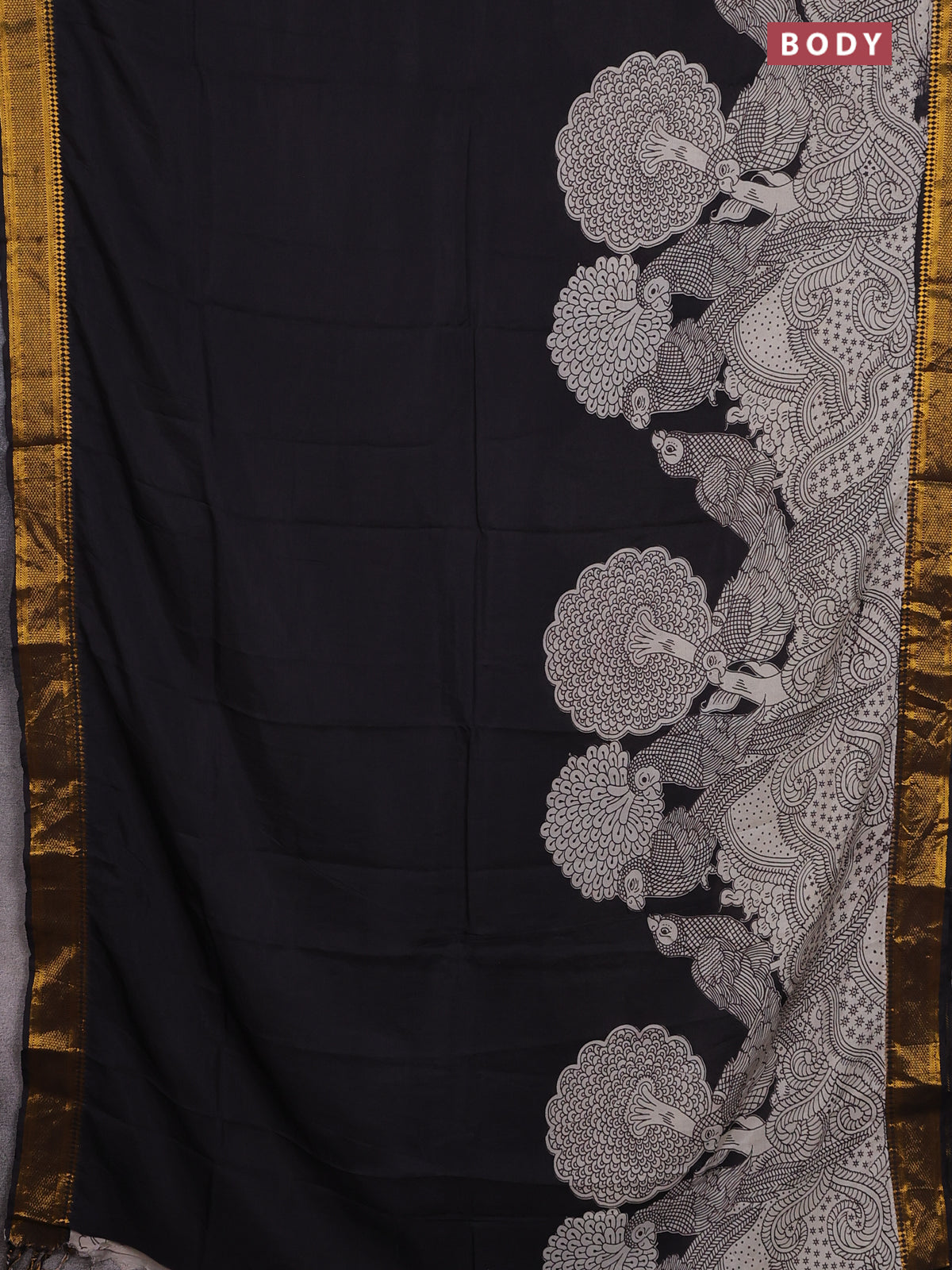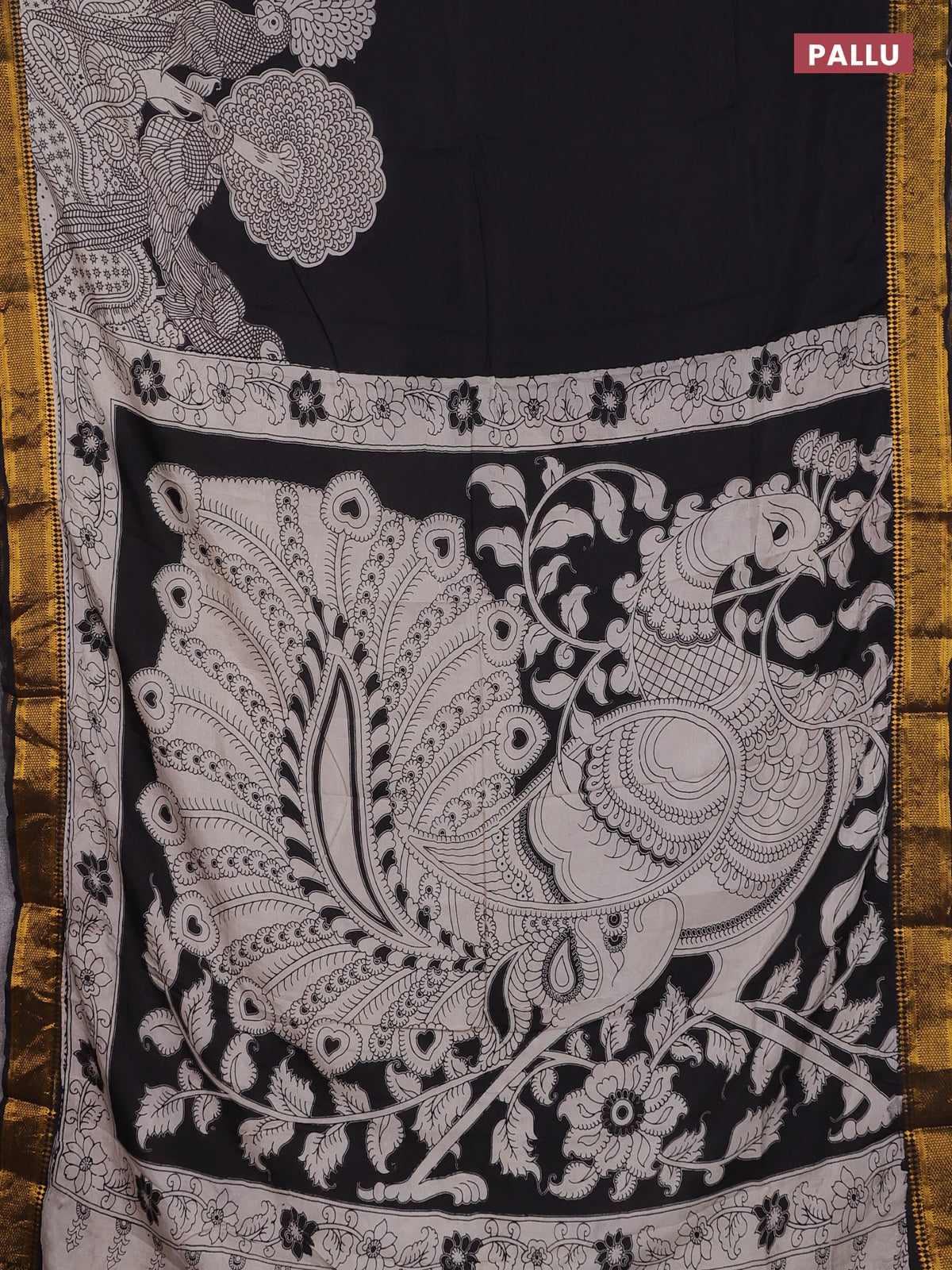 Kalamkari semi silk saree black with allover prints and zari woven border