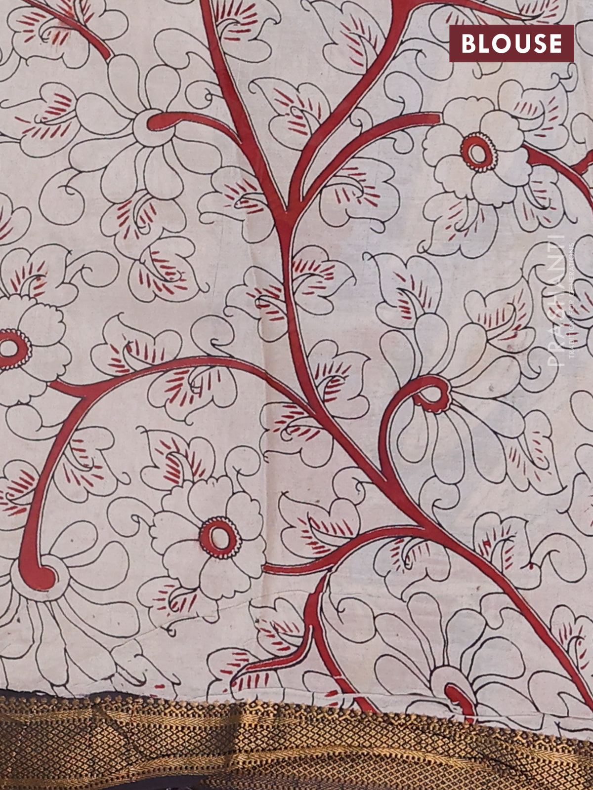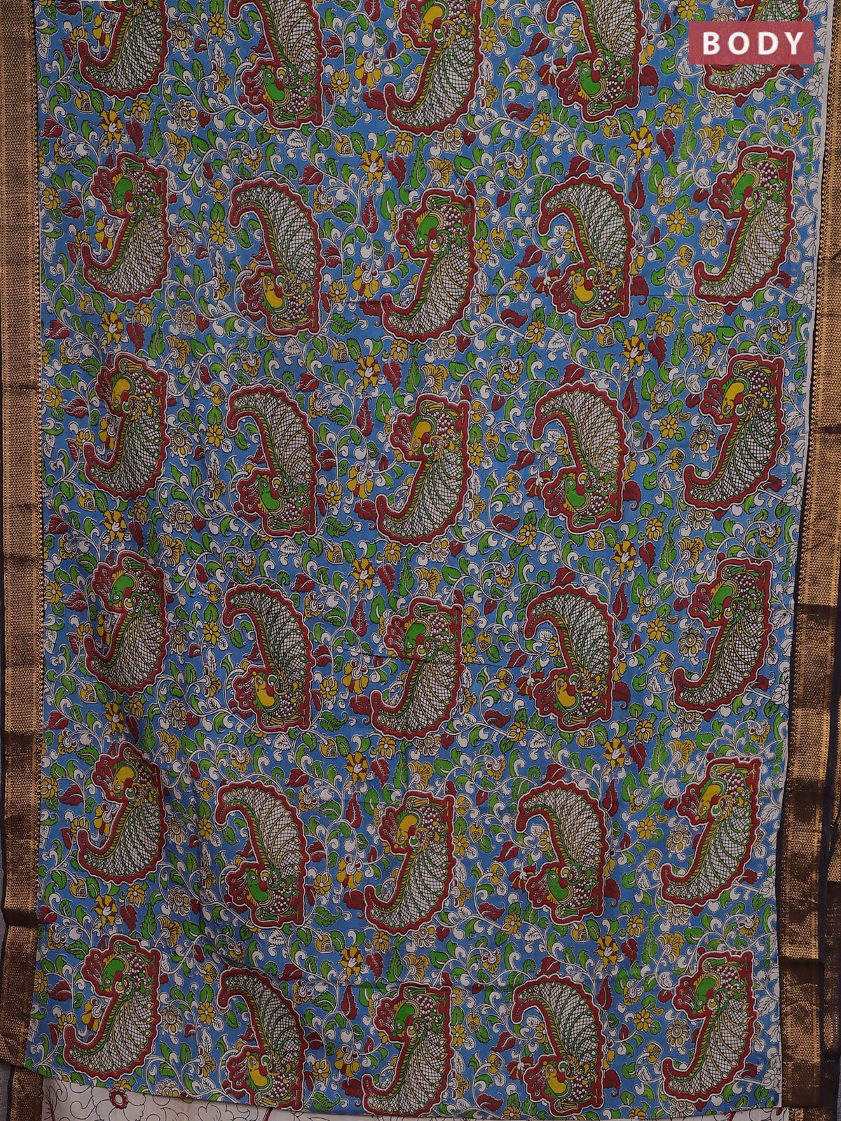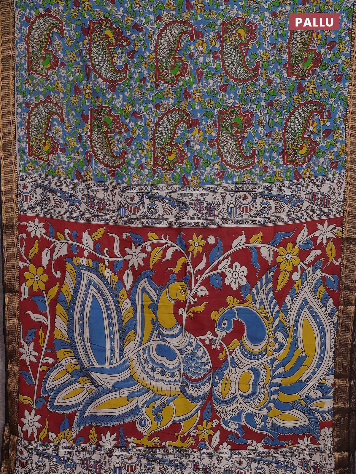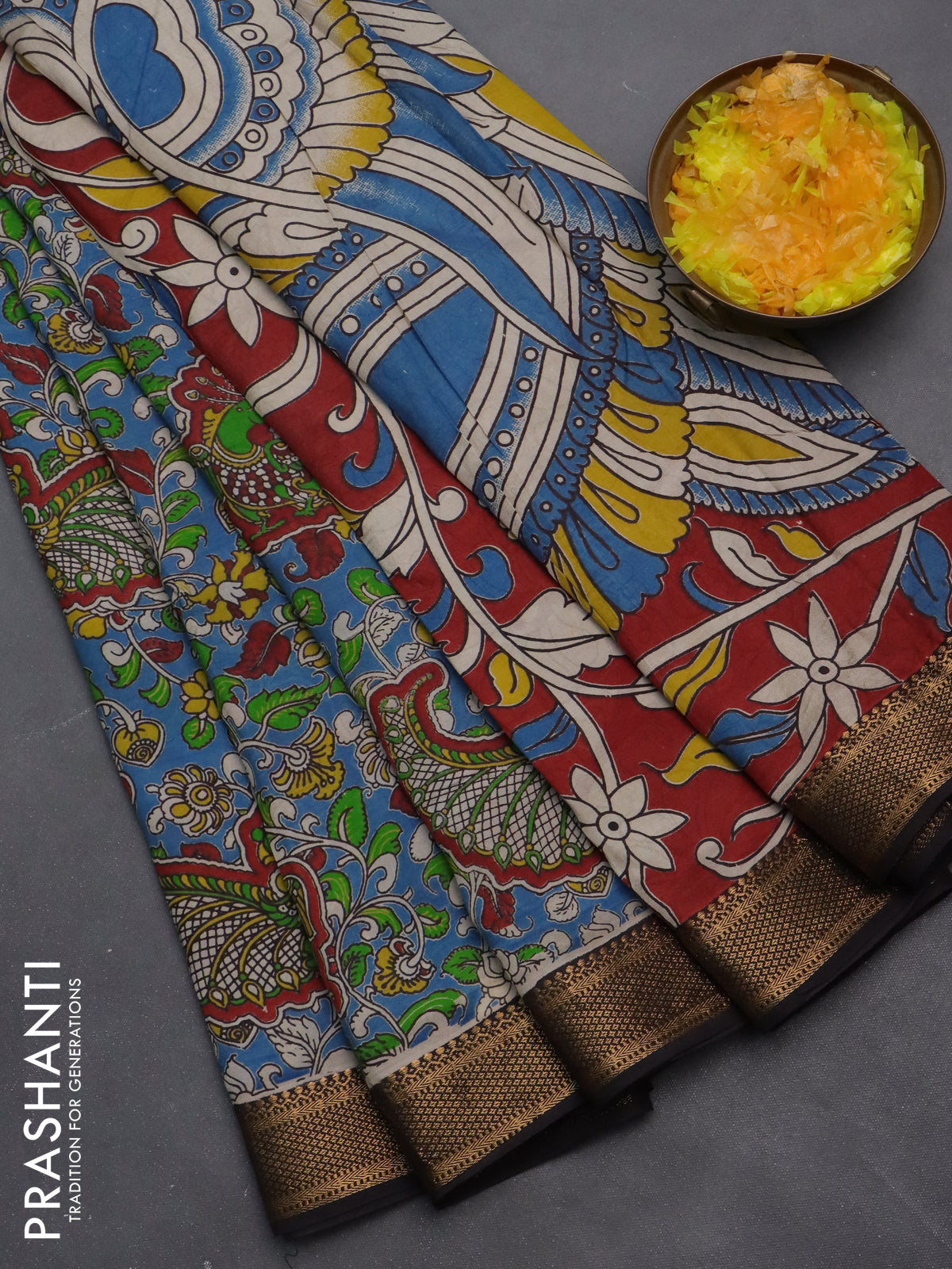 Kalamkari semi silk saree blue and black with allover prints and zari woven border