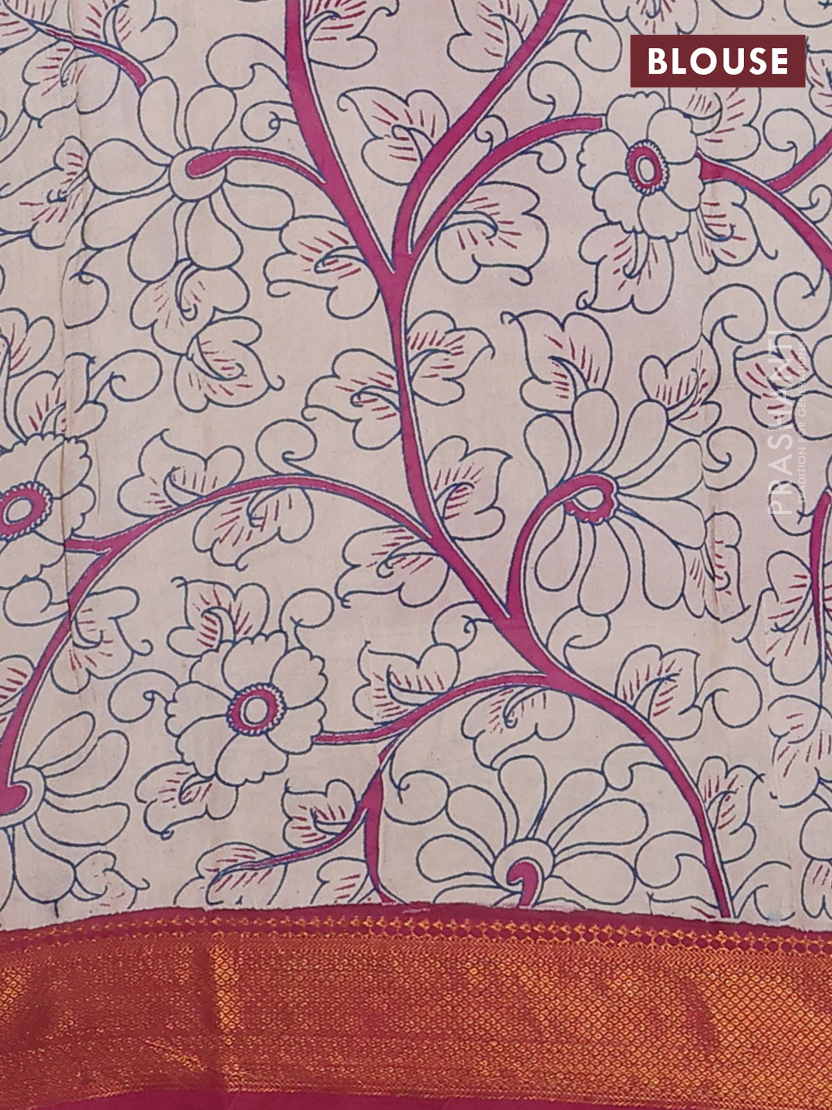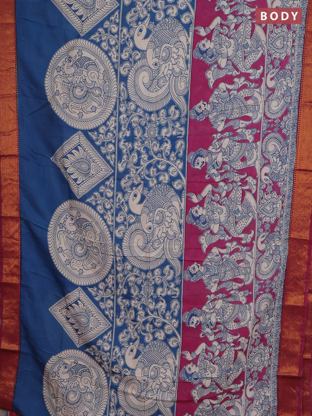 Kalamkari semi silk saree blue pink and dark pink with allover prints and zari woven border