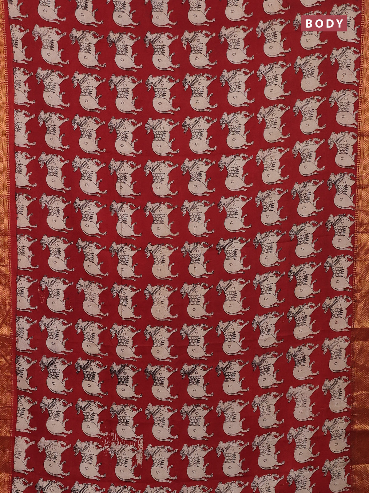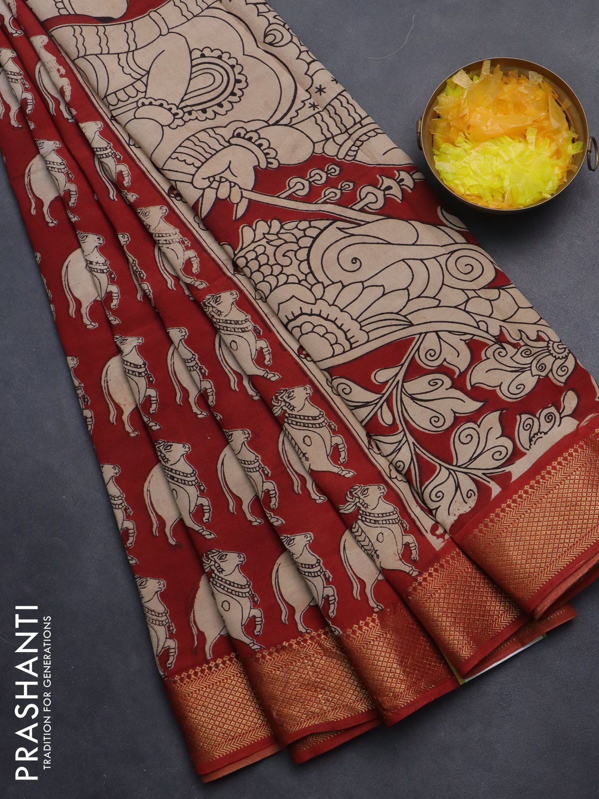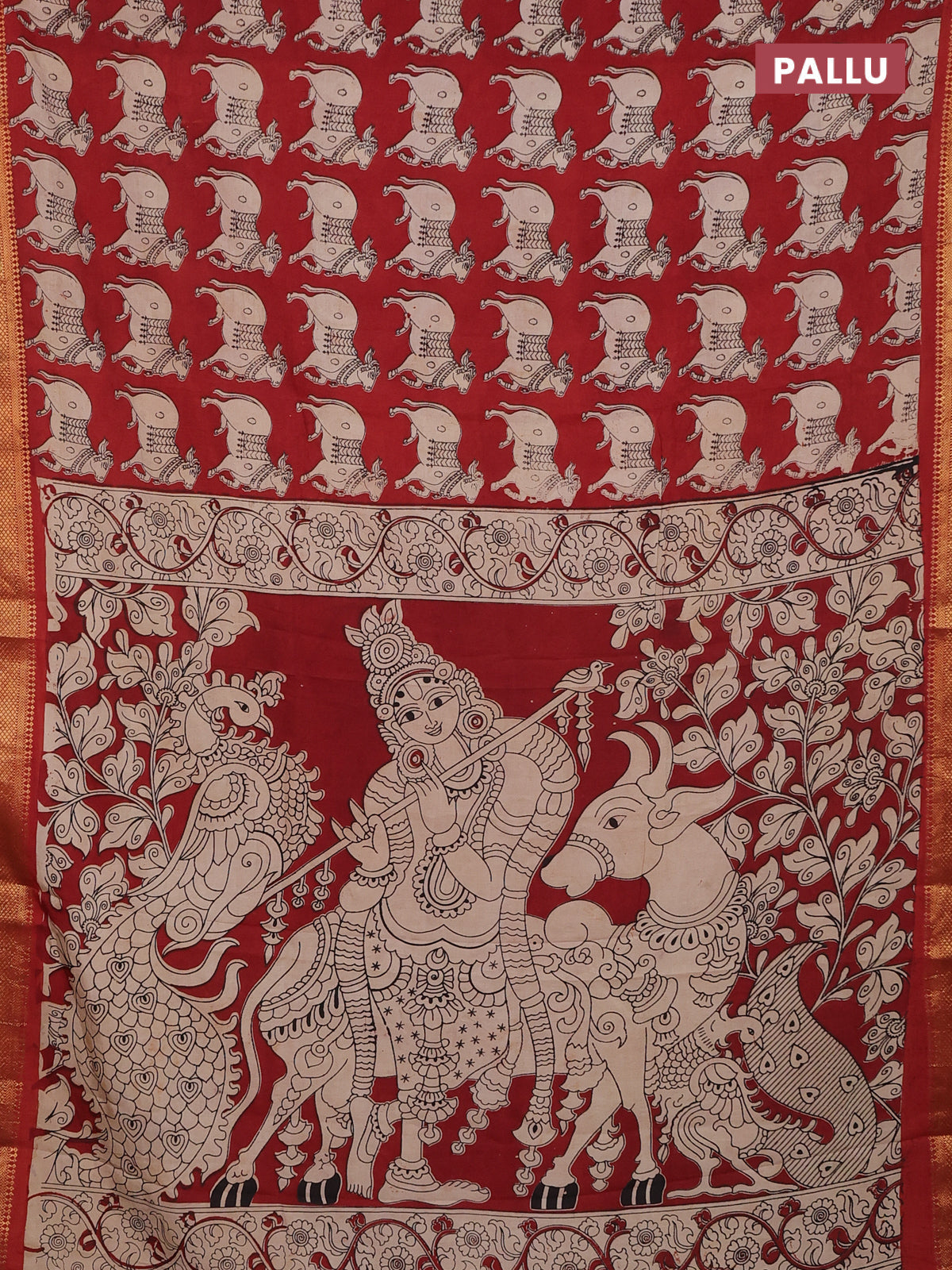 Kalamkari semi silk saree maroon with allover pichwai prints and zari woven border