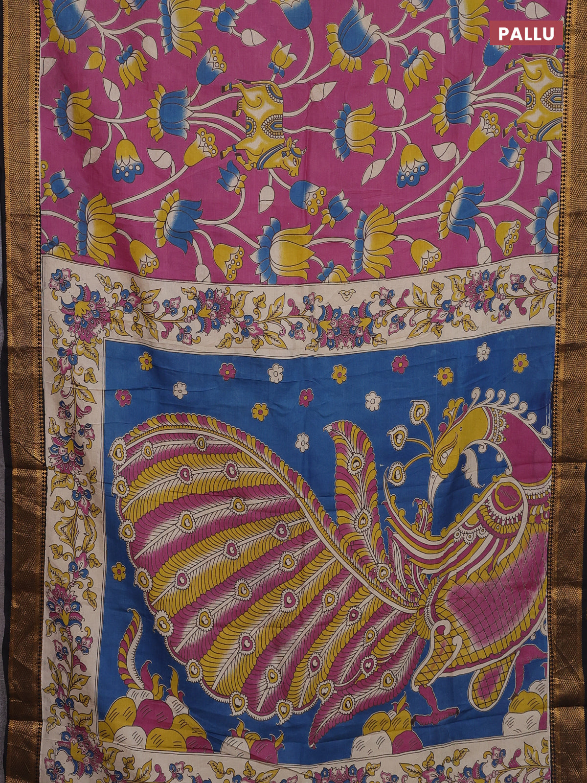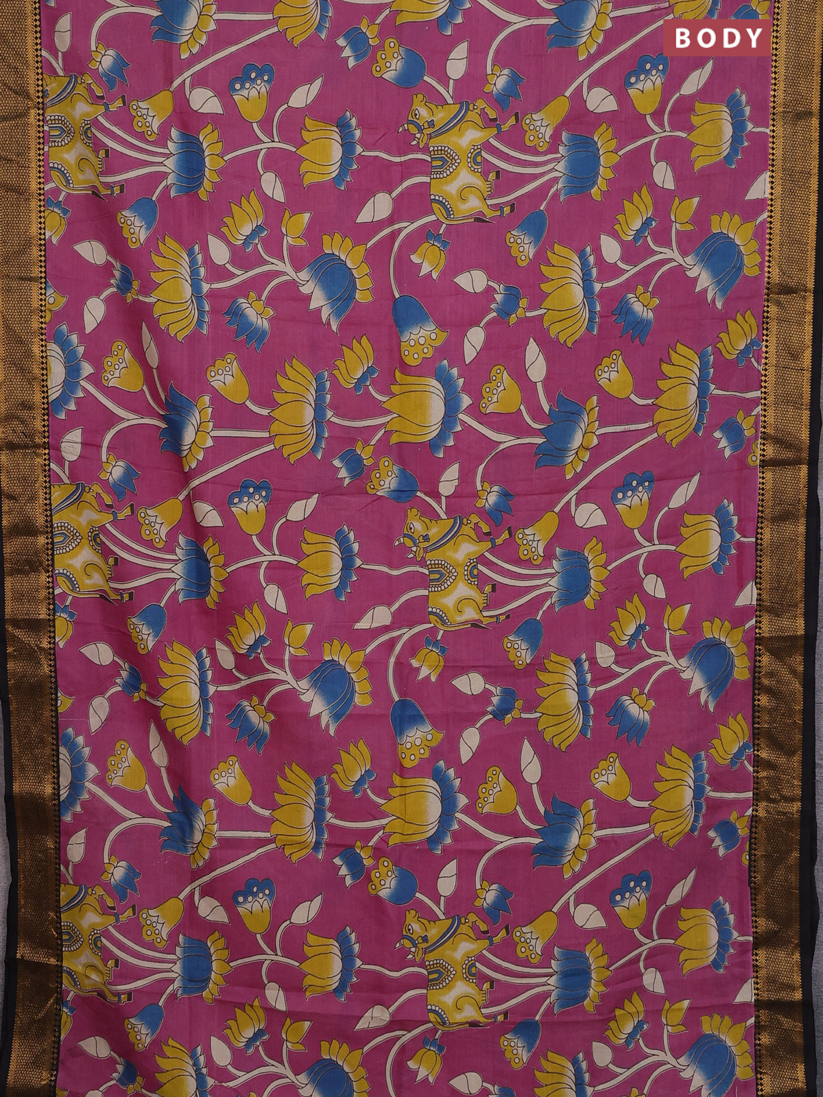 Kalamkari semi silk saree mauve pink and black with allover prints and zari woven border