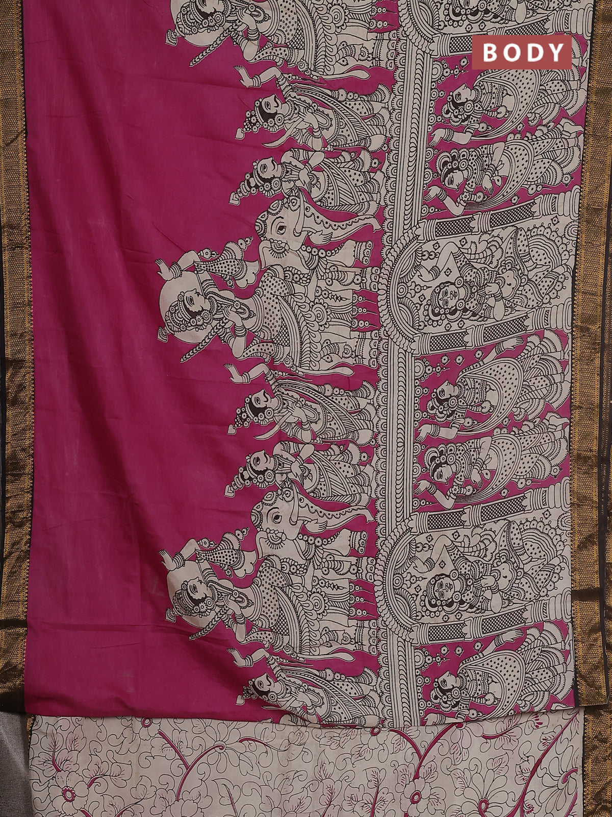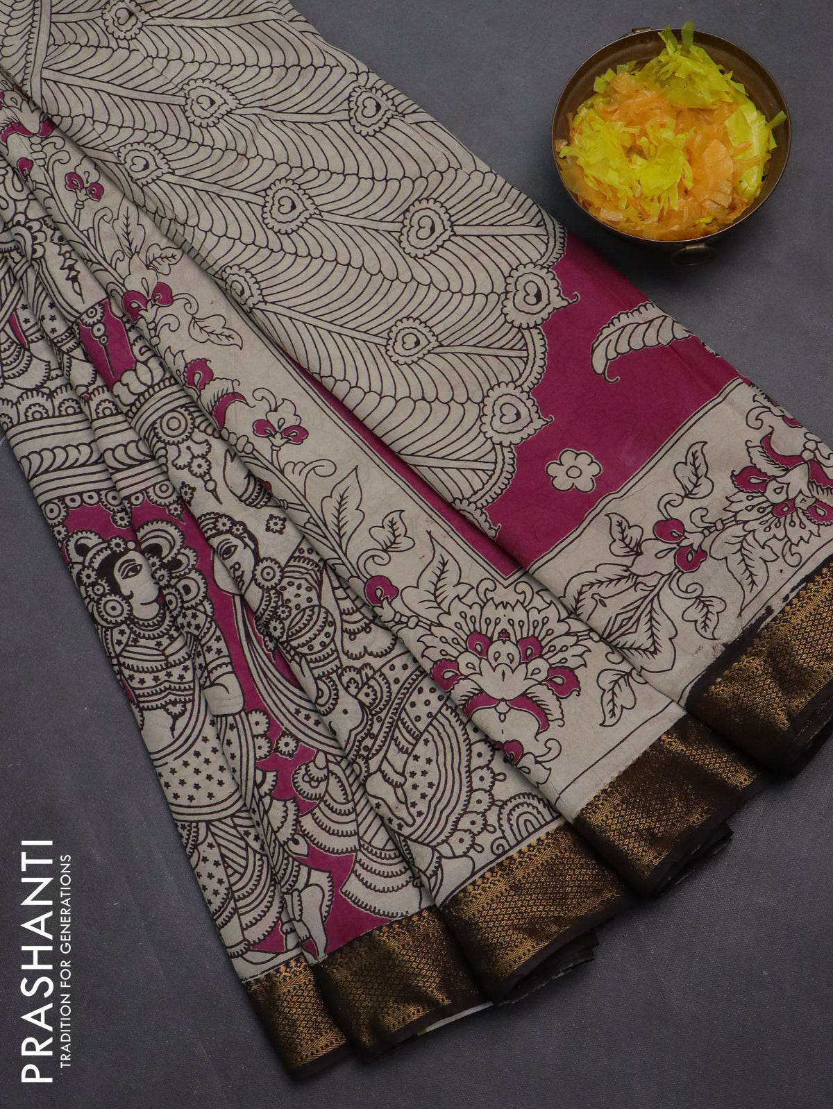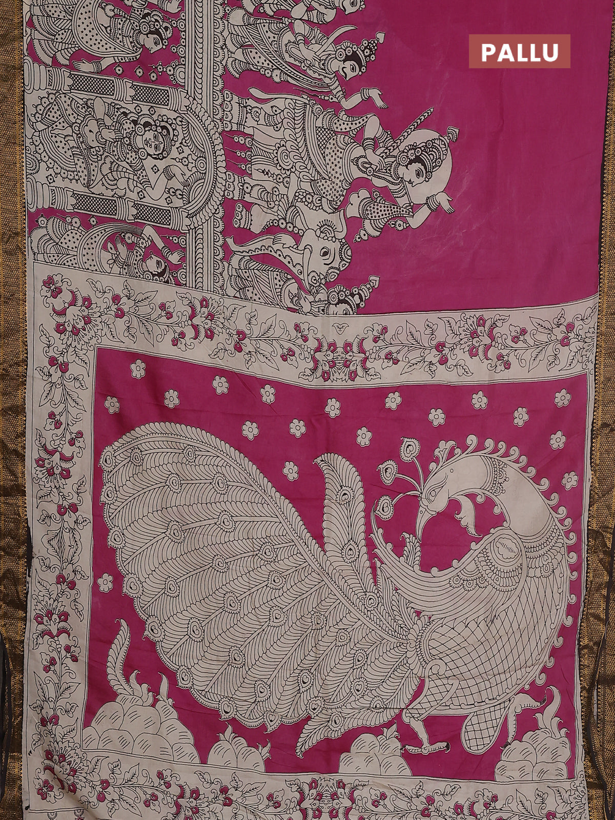 Kalamkari semi silk saree pink and black with allover prints and zari woven border