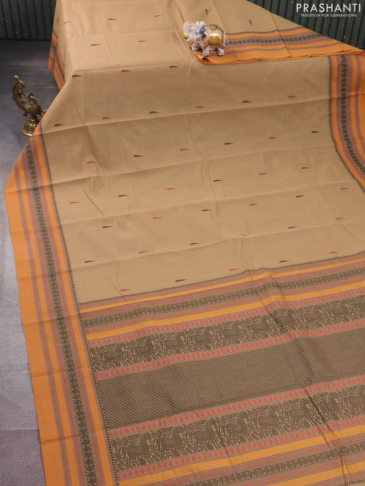 Kanchi cotton saree beige and mustard shade with thread woven buttas and thread woven border