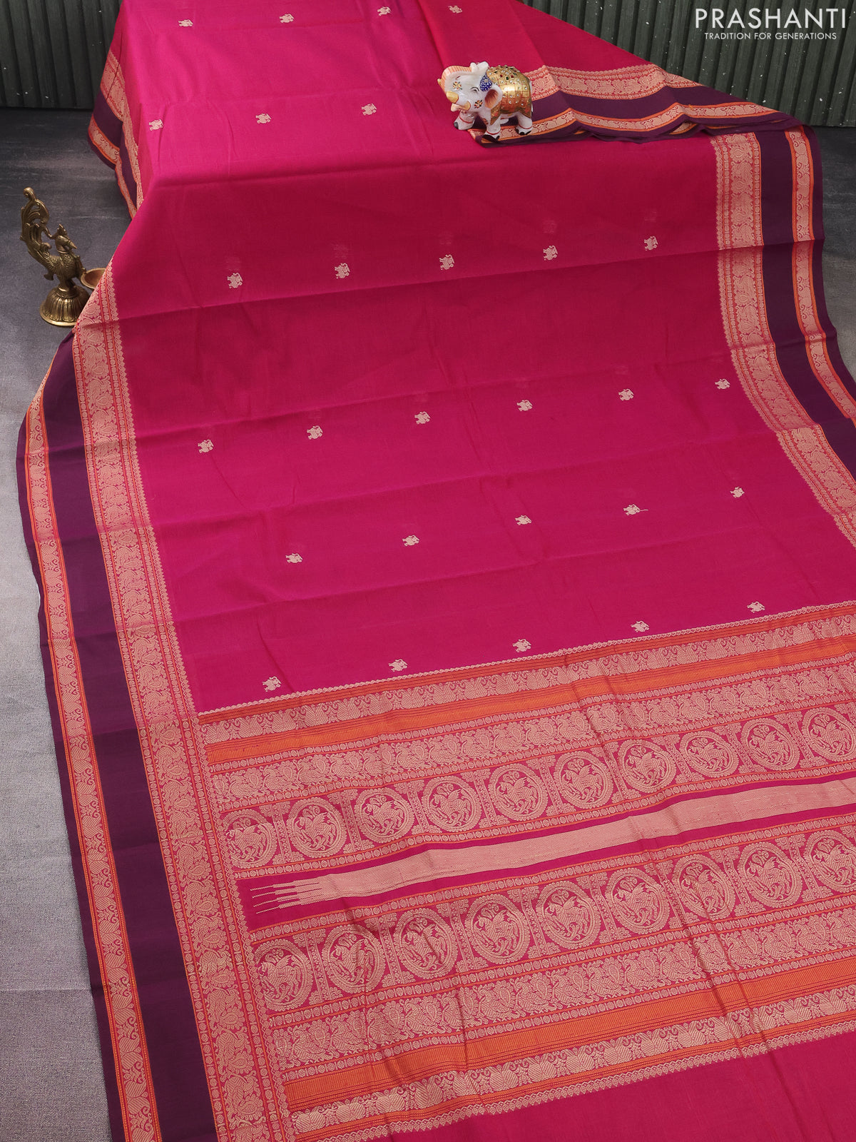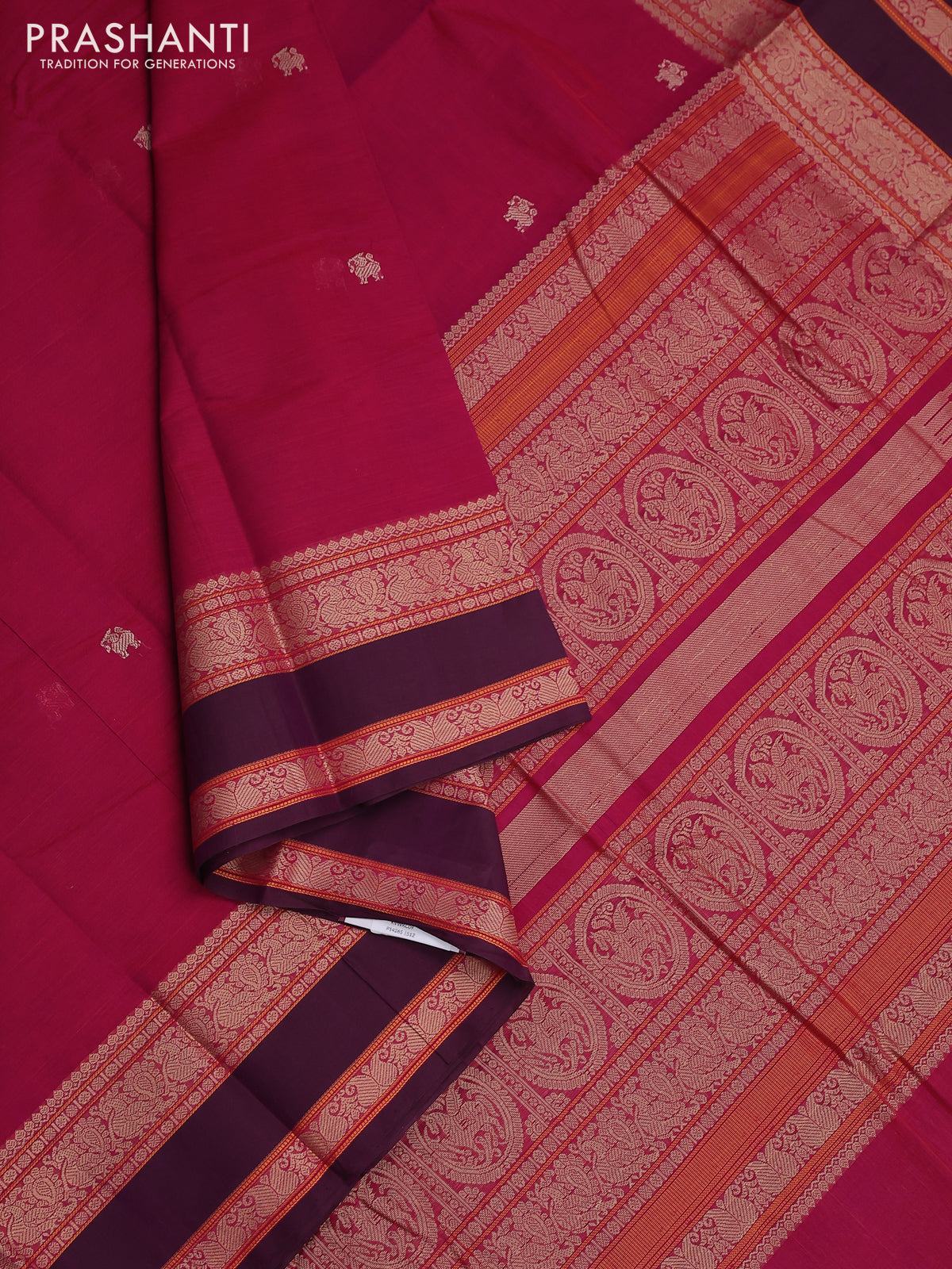 Kanchi cotton saree dark pink and wine shade with thread woven buttas and rettapet thread woven border