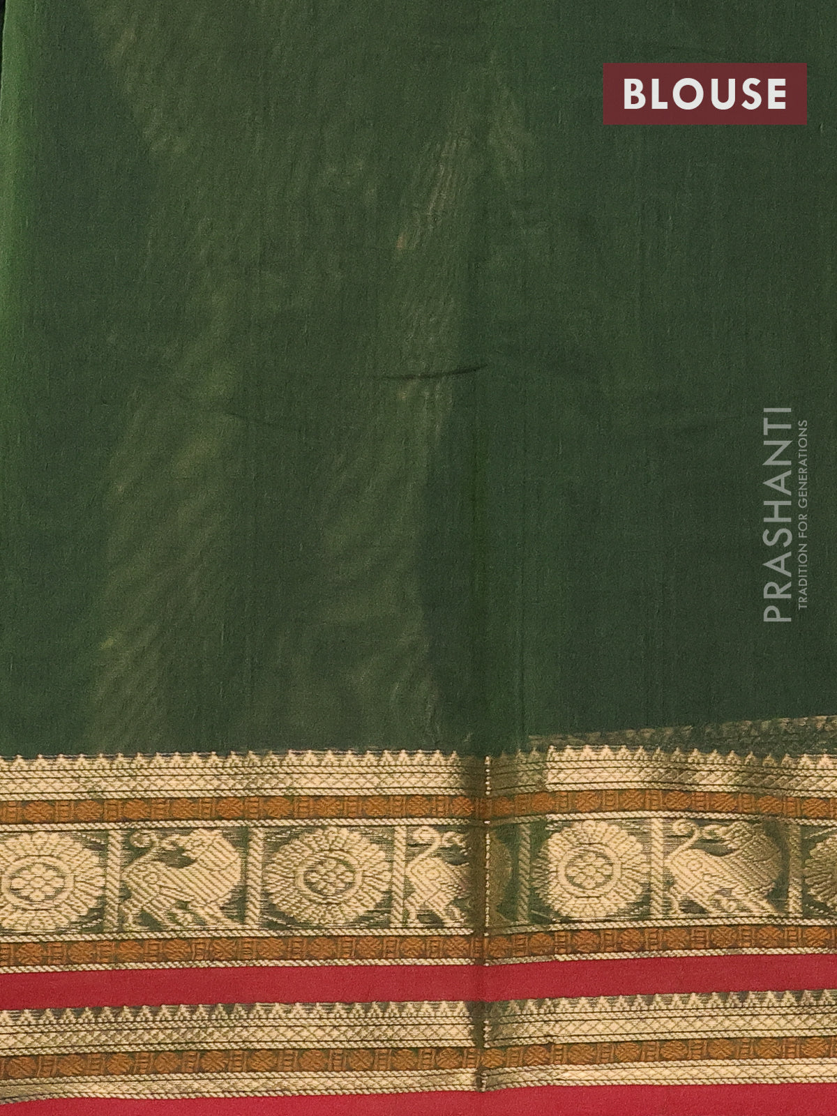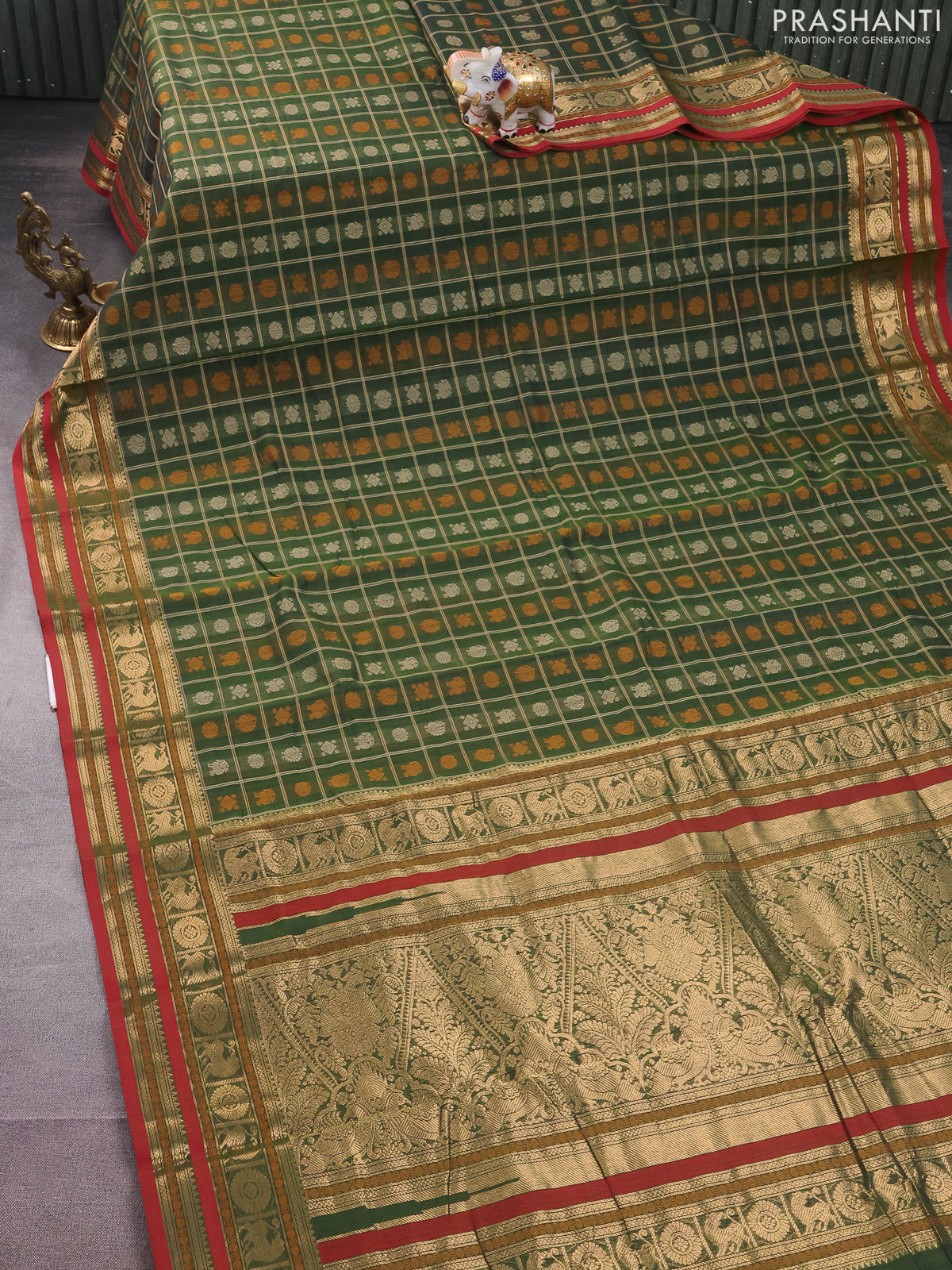 Kanchi cotton saree green and maroon with allover zari checked pattern & buttas and zari woven border