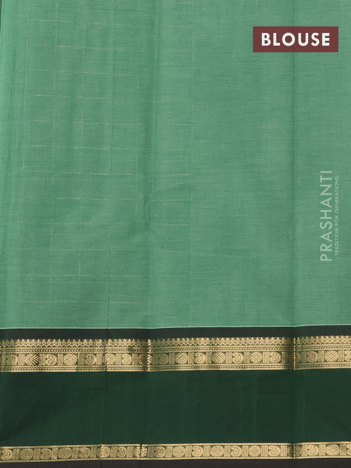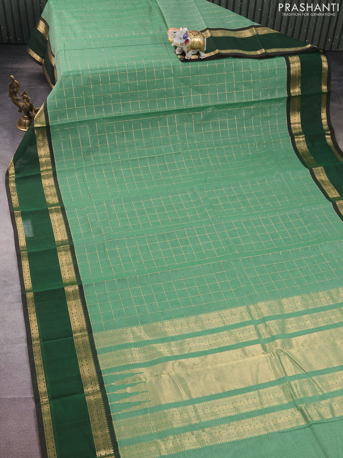 Kanchi cotton saree pastel green and dark green with allover zari checked pattern and rettapet zari woven border