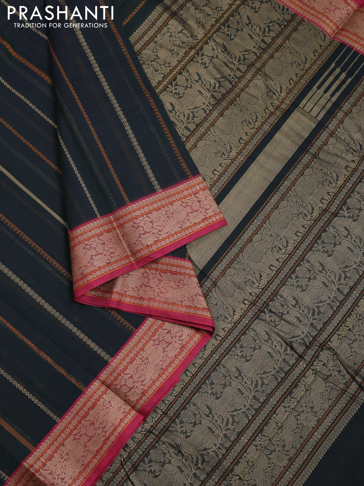 Kanchi cotton saree sap green and pink with allover thread weaves and thread woven border