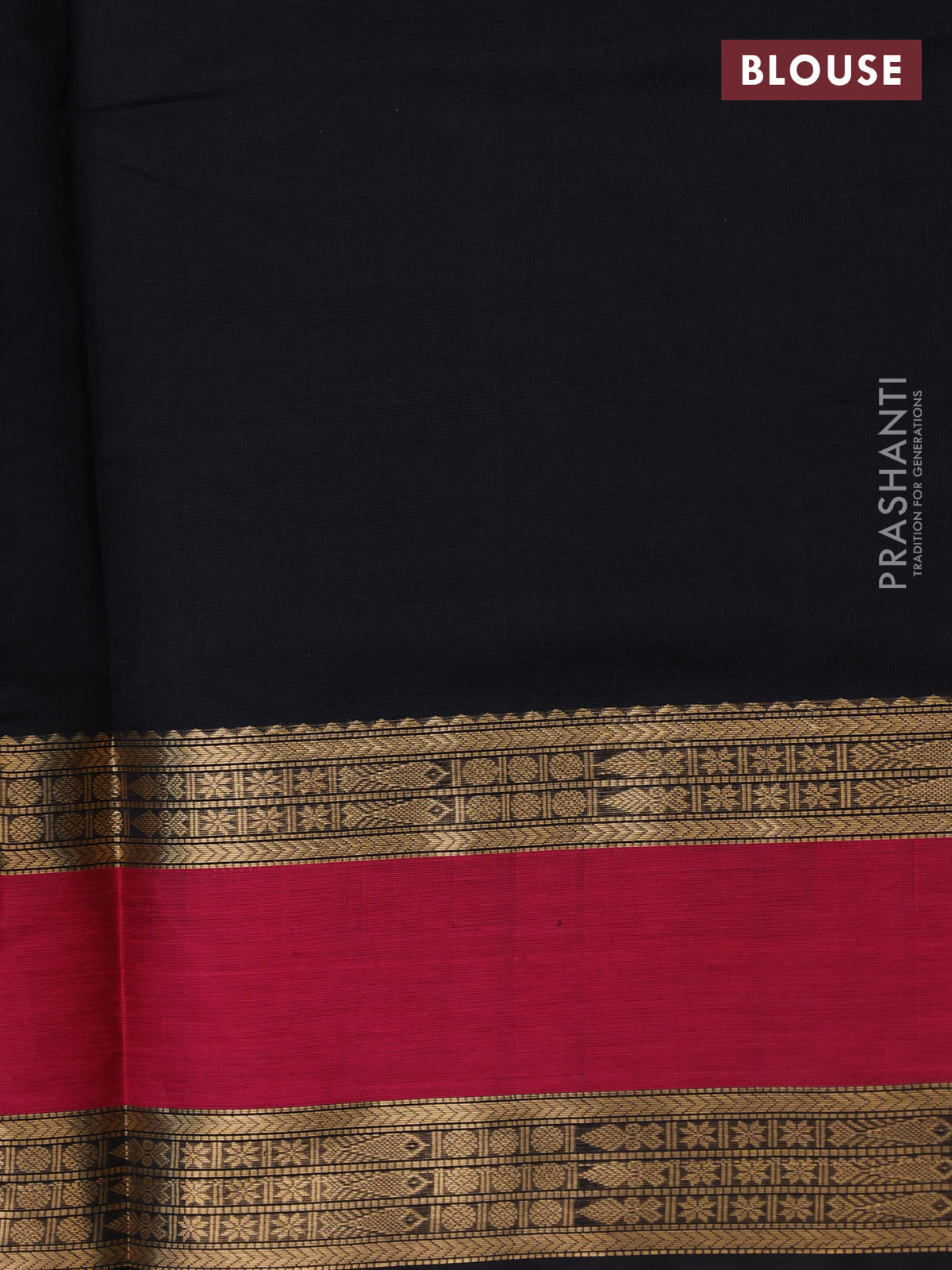 Kanchipuram silk cotton saree black and pink with zari woven buttas and rettapet zari woven border