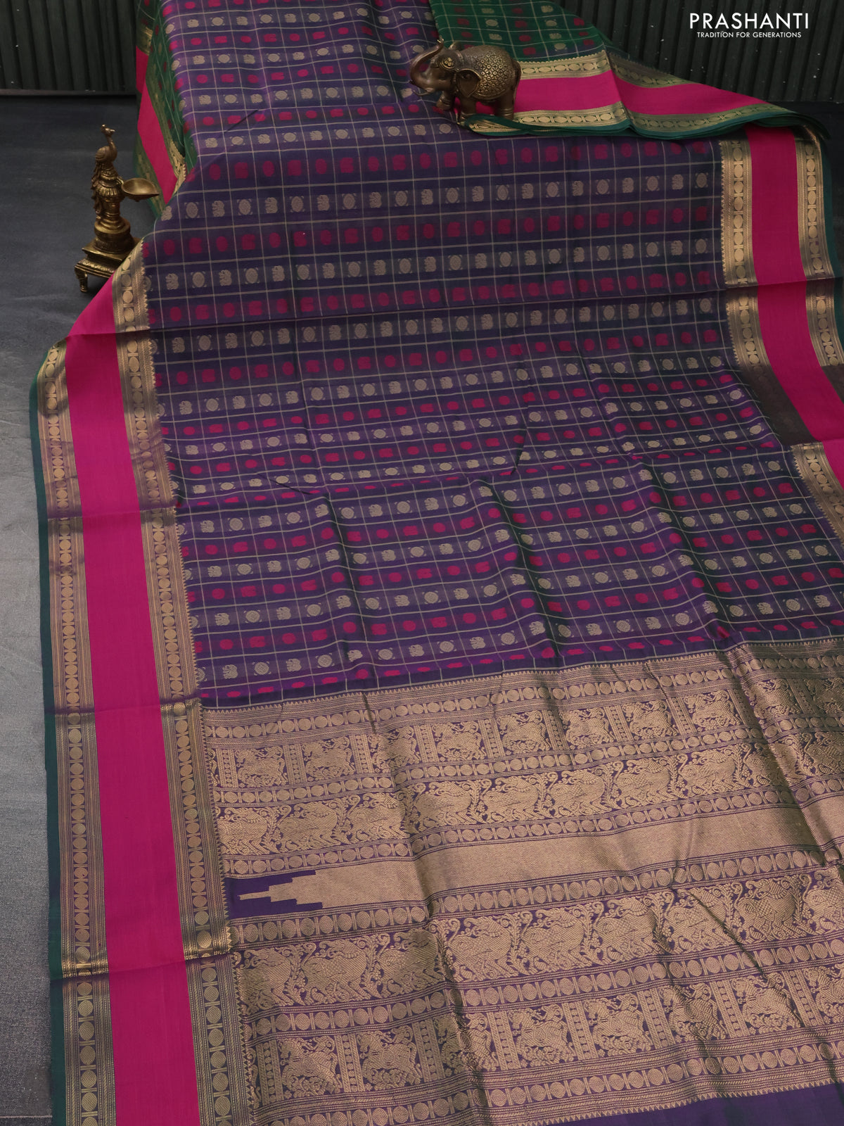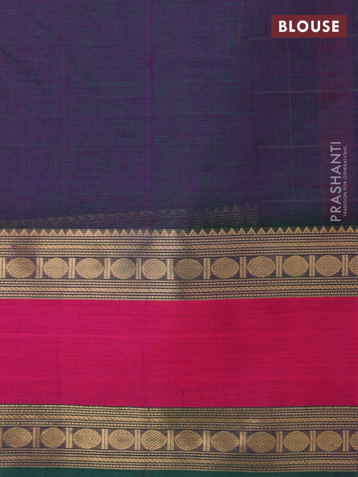 Kanchipuram silk cotton saree dual shade of green and pink with allover thread checks & 1000 buttas and rettapet zari woven border