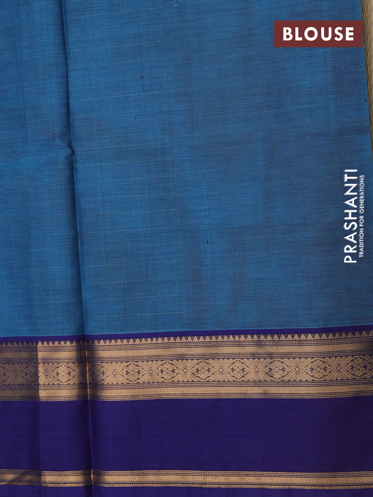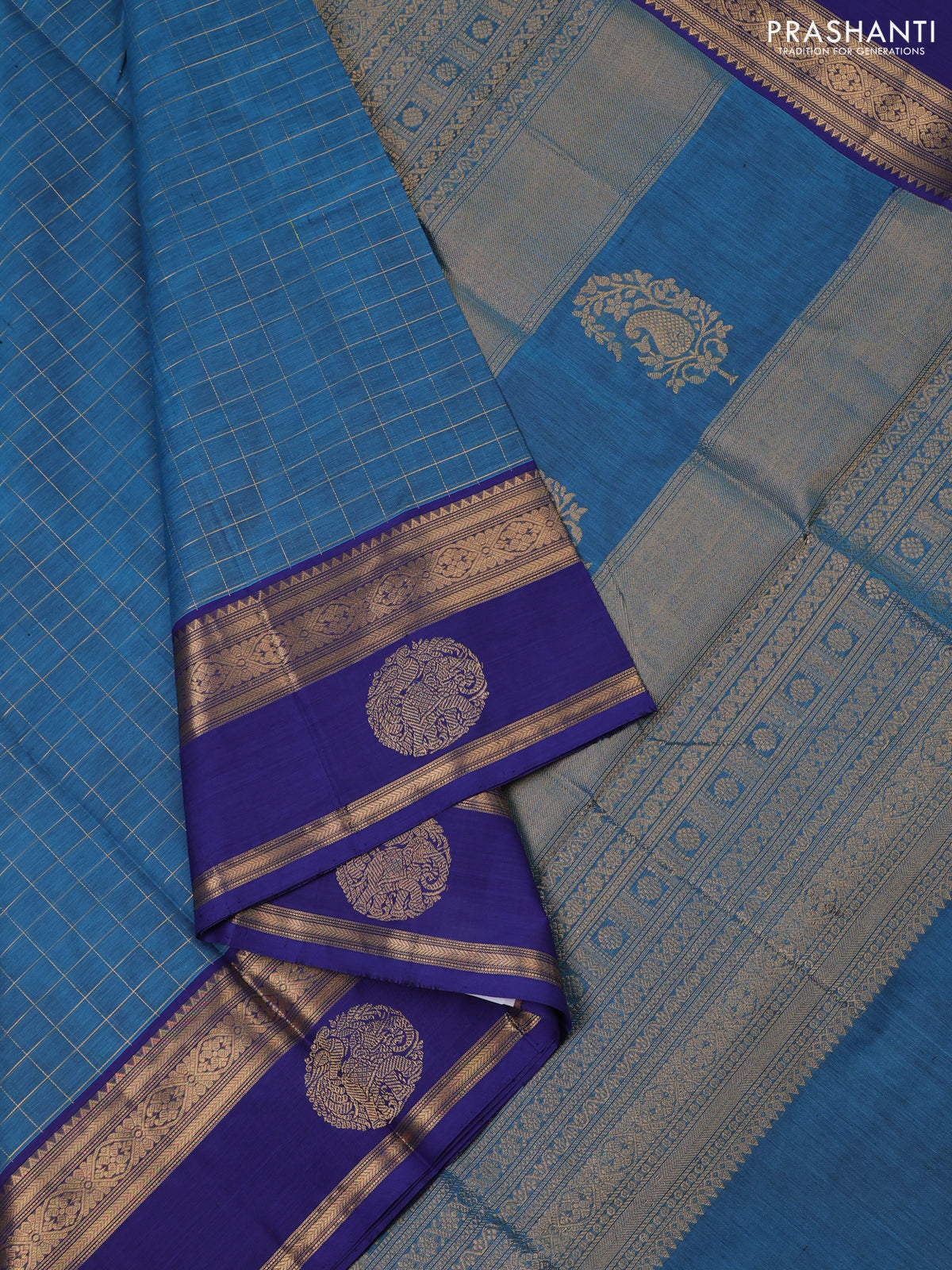Kanchipuram silk cotton saree pastel blue with allover zari checked pattern and zari woven butta border