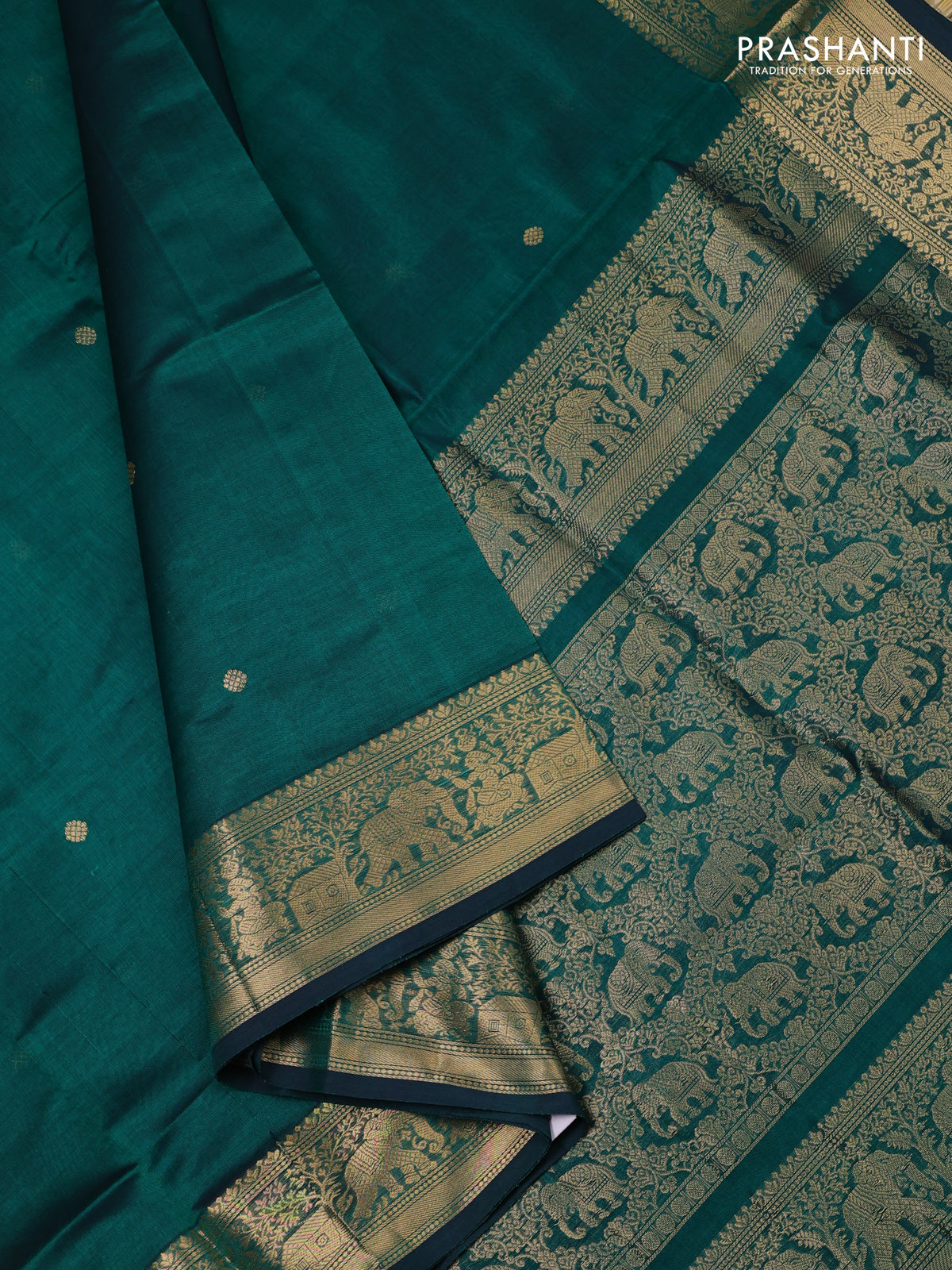 Kanchipuram silk cotton saree peacock green with zari woven buttas and zari woven border