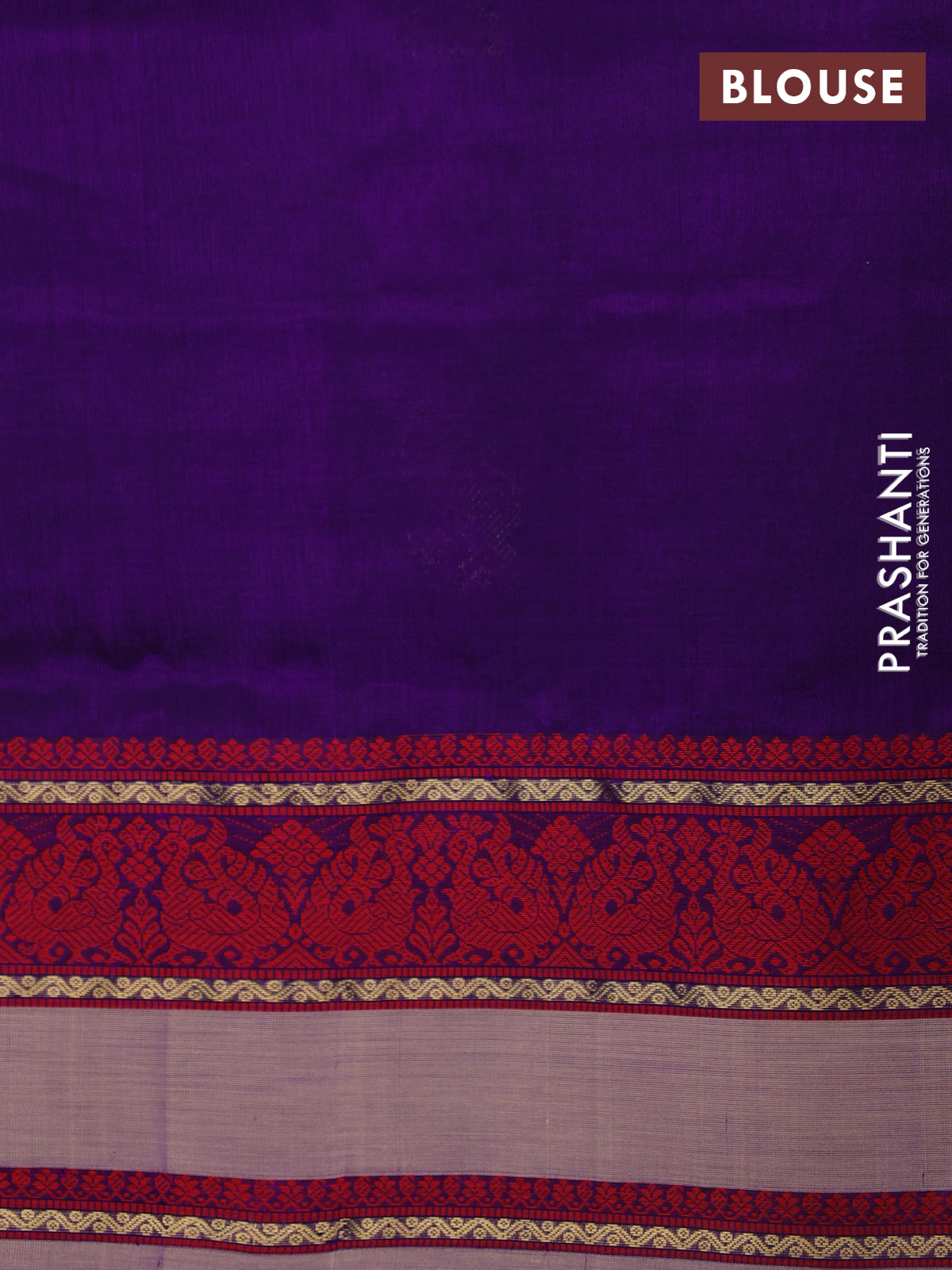 Kanchipuram silk cotton saree violet and grey with zari woven buttas and thread woven border