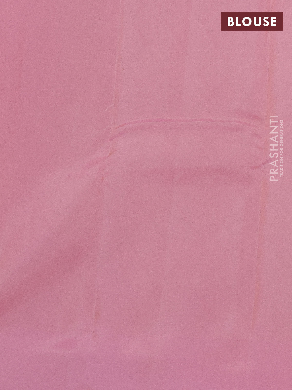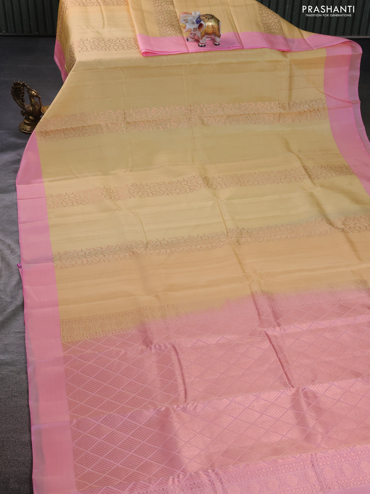 Kanchipuram silk saree cream and light pink with allover copper zari weaves and simple border