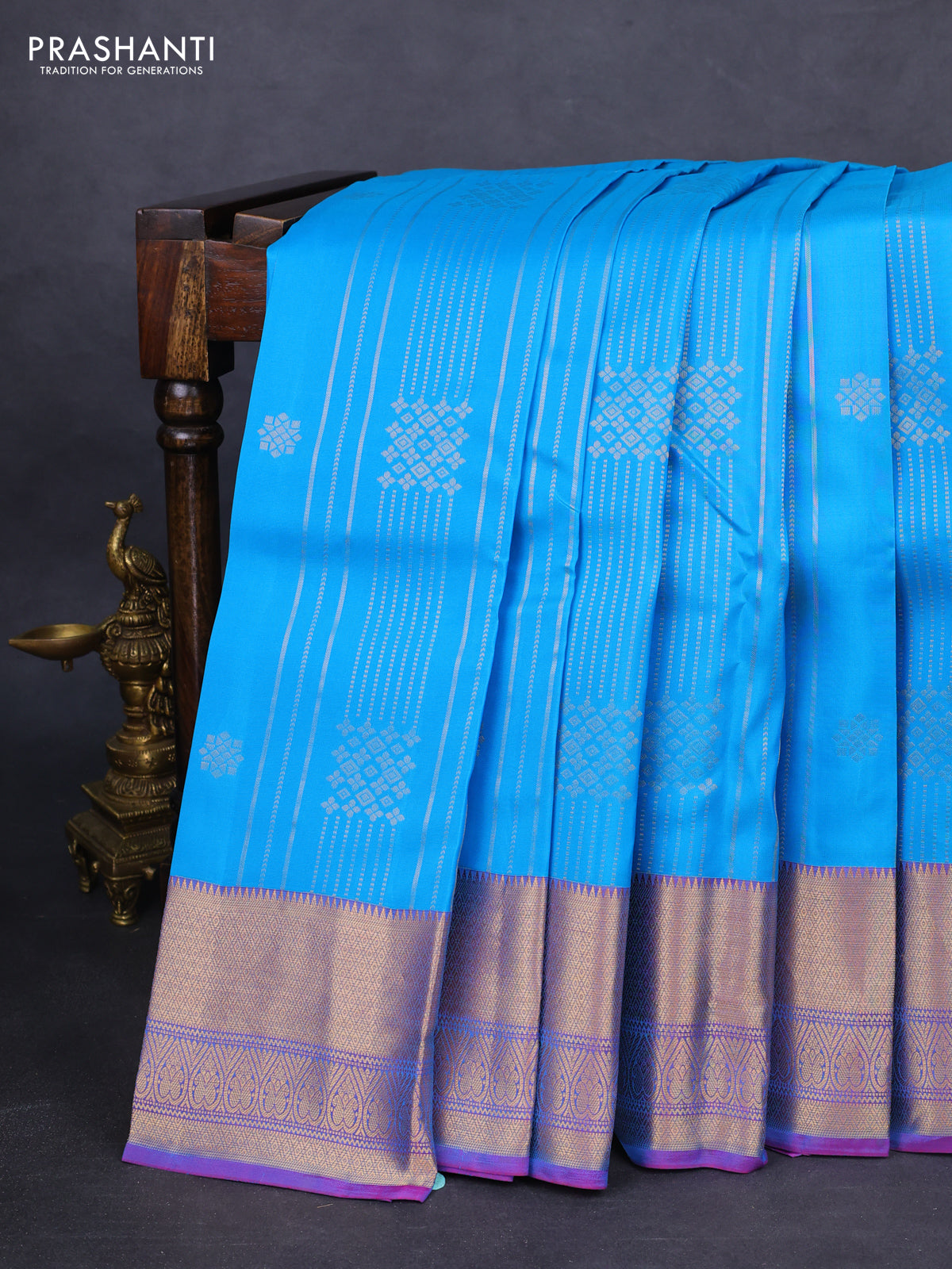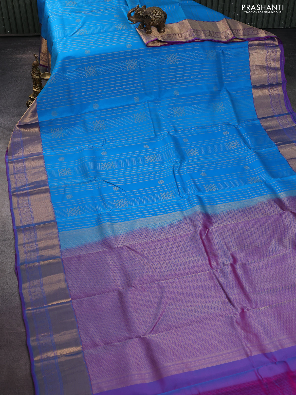 Kanchipuram silk saree cs blue and dual shade of purple with allover zari weaves and zari woven border