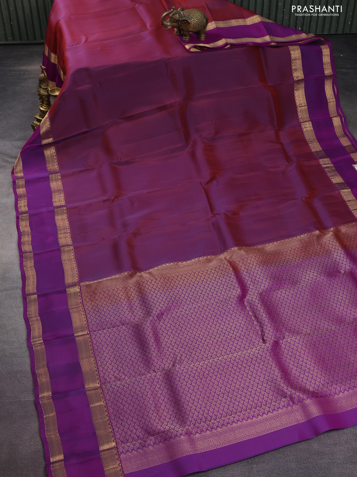 Kanchipuram silk saree dual shade of maroon and purple with plain body and rettapet zari woven border
