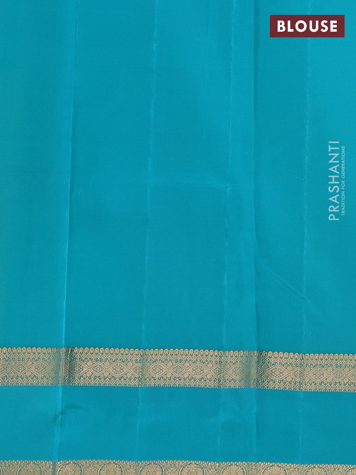 Kanchipuram silk saree dual shade of teal green and teal blue with plain body and rettapet zari woven border