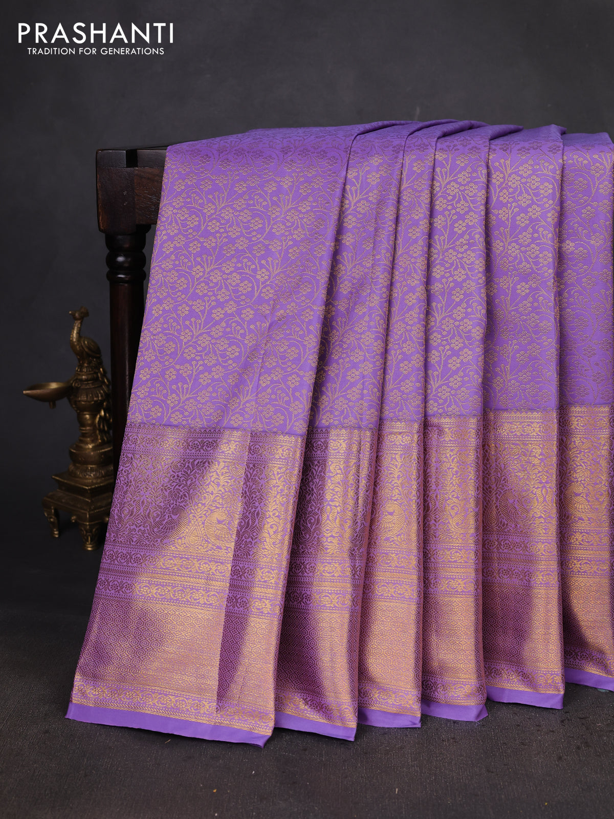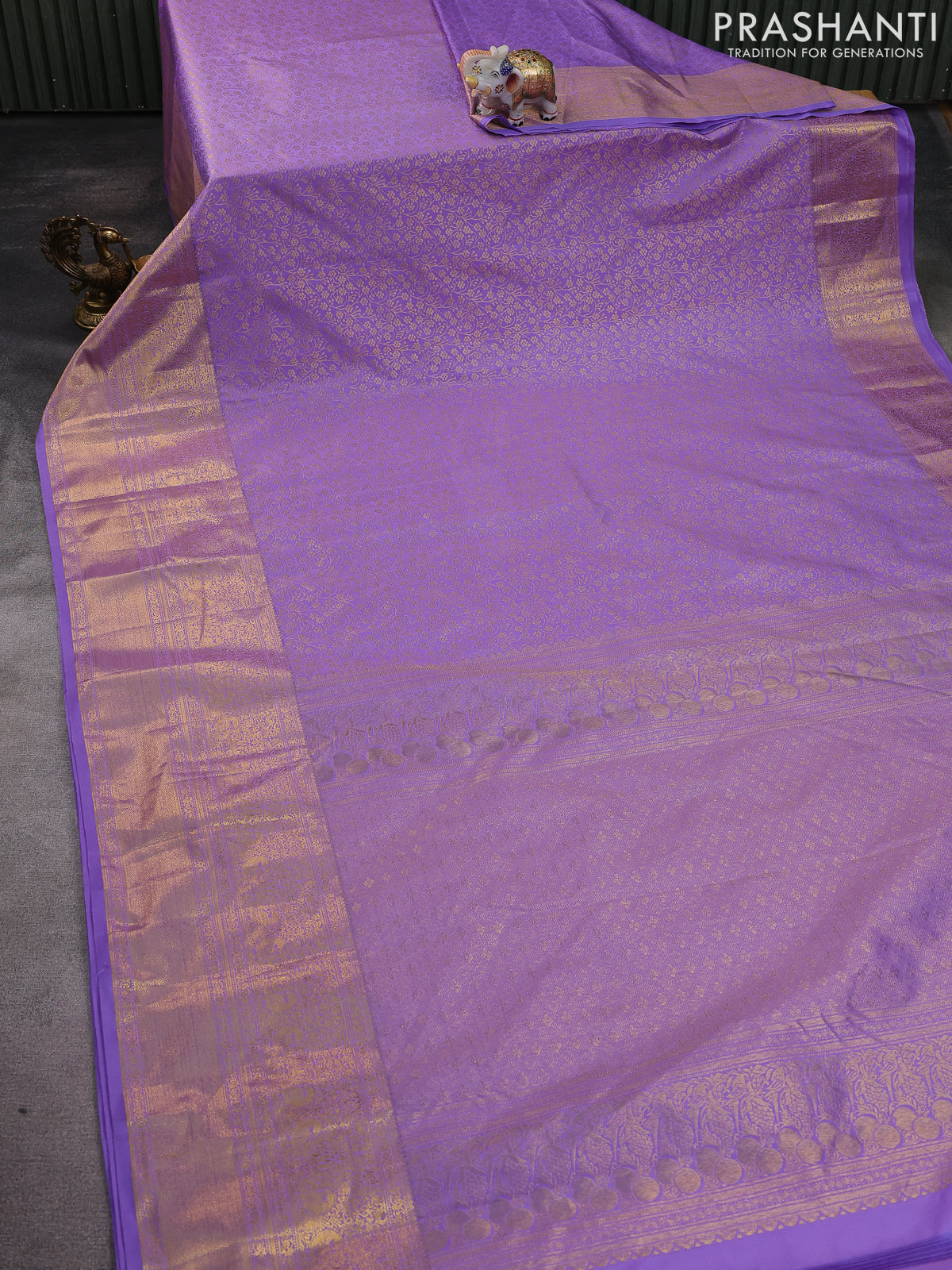 Kanchipuram silk saree lavender with allover zari woven brocade weaves and long zari woven border
