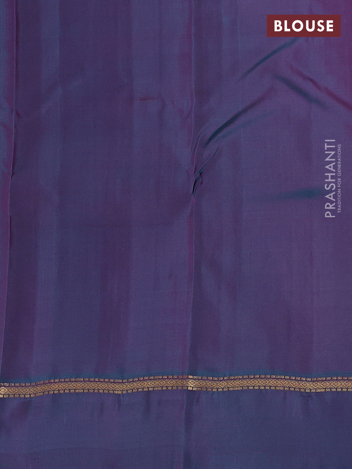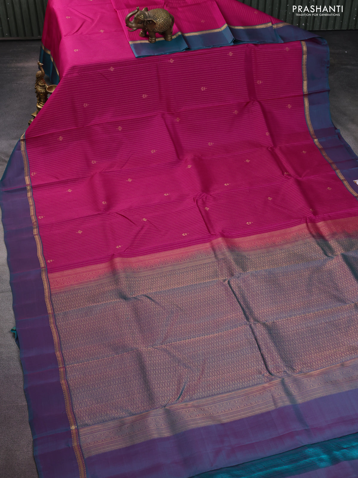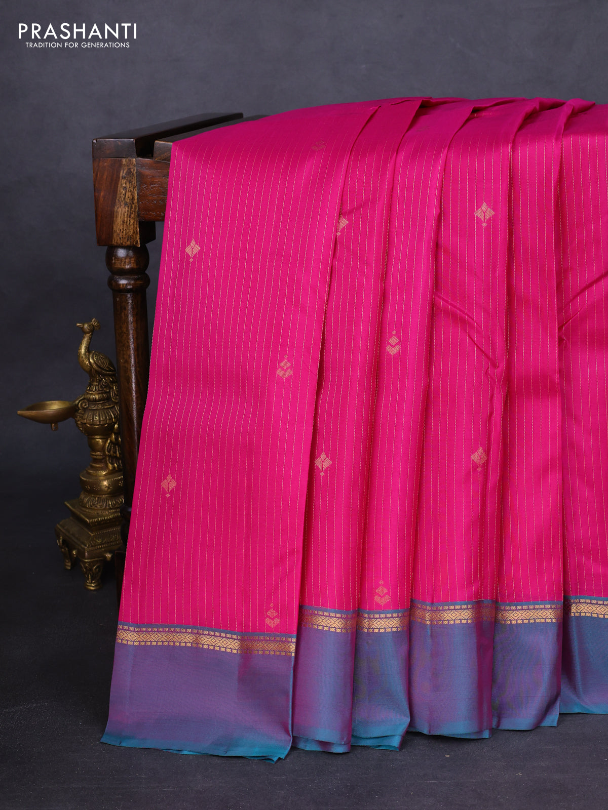 Kanchipuram silk saree magenta pink and teal green with allover zari weaves and zari woven simple border