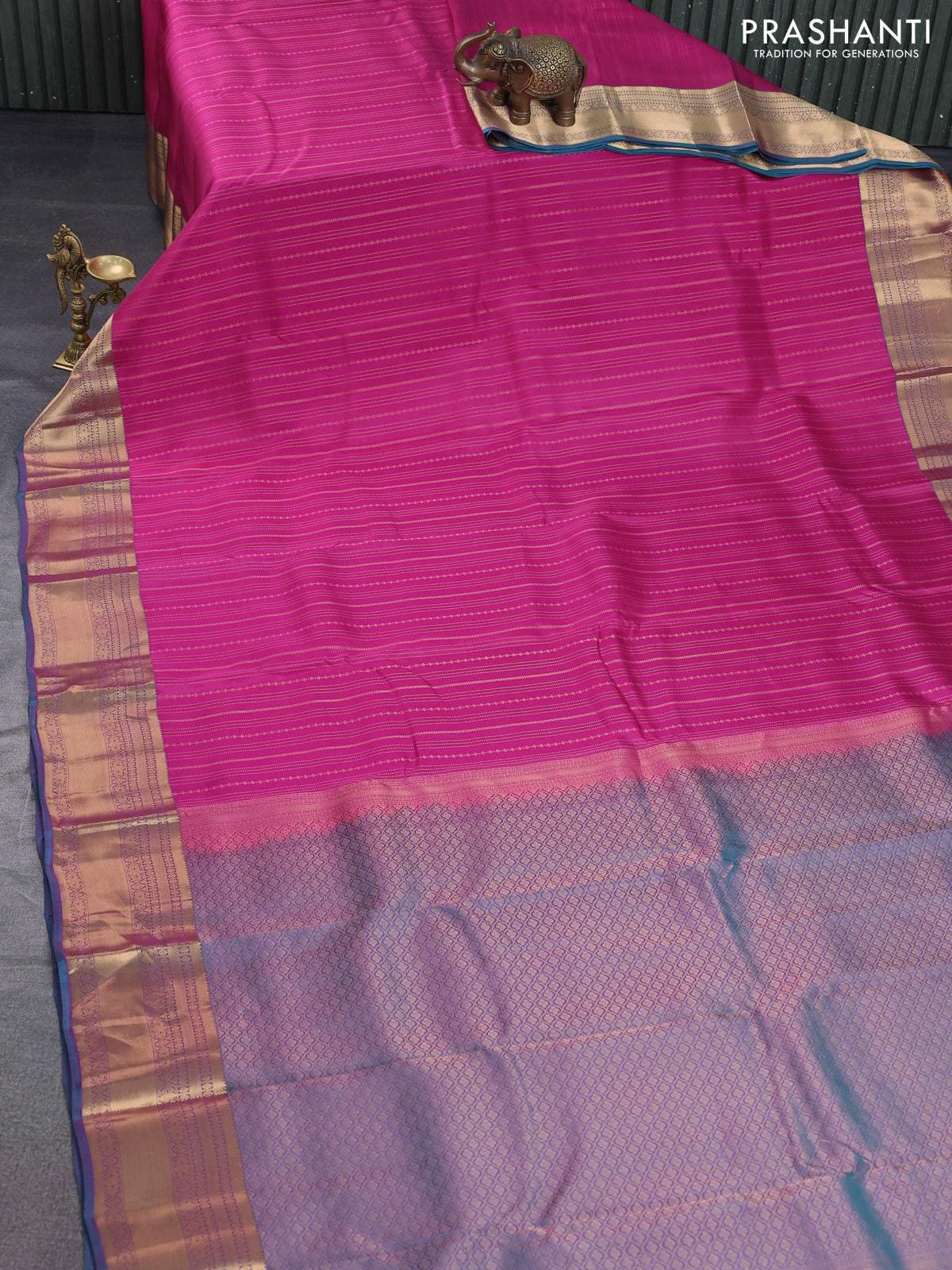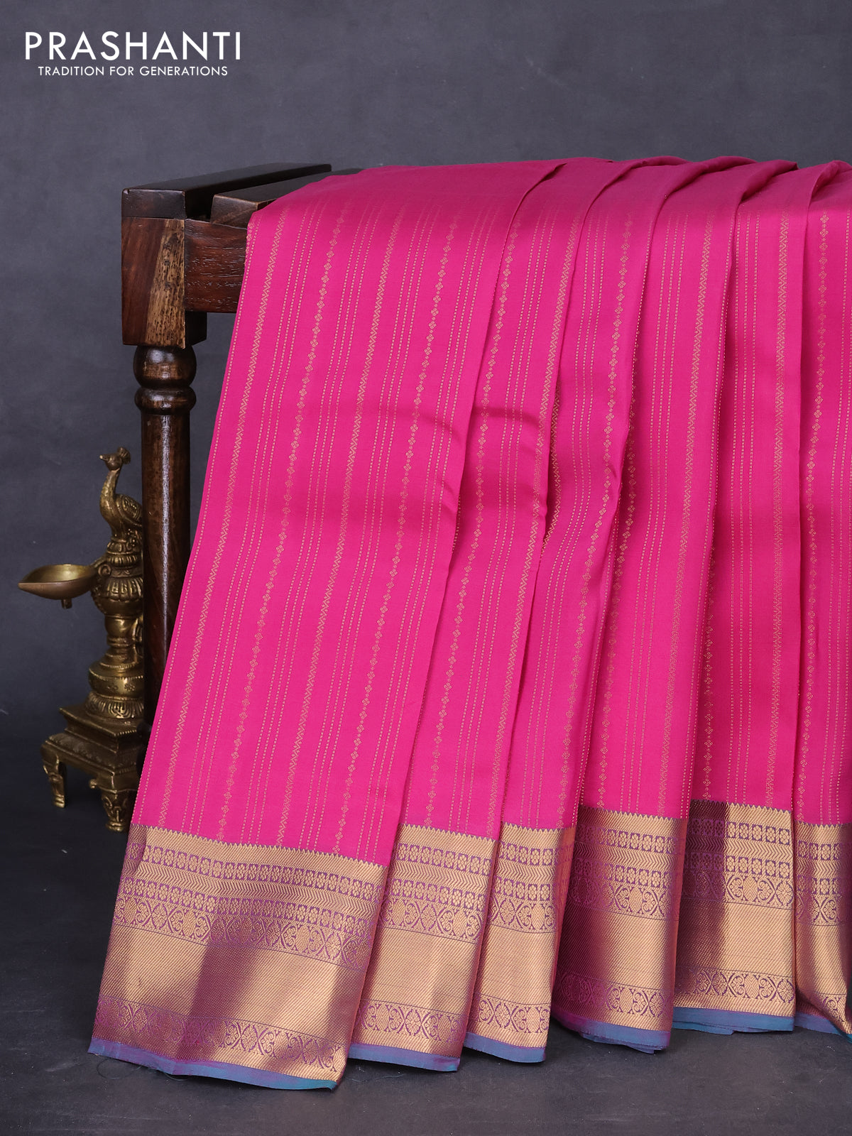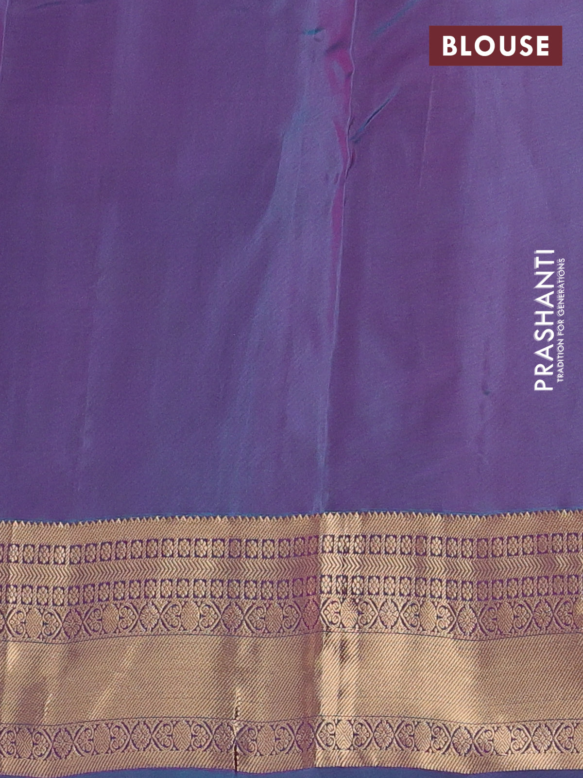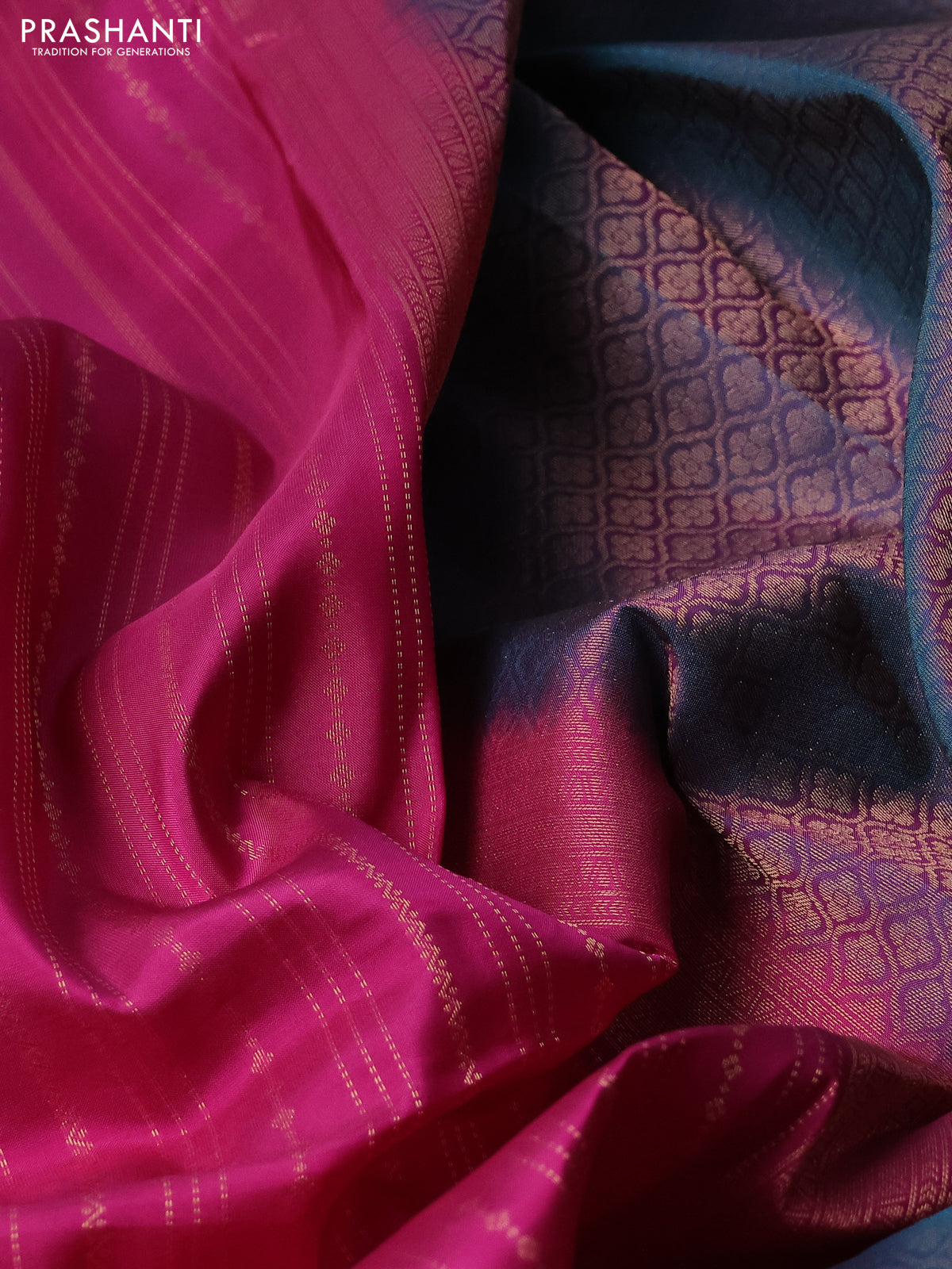 Kanchipuram silk saree pink and dual shade of teal green with allover zari weaves and zari woven border